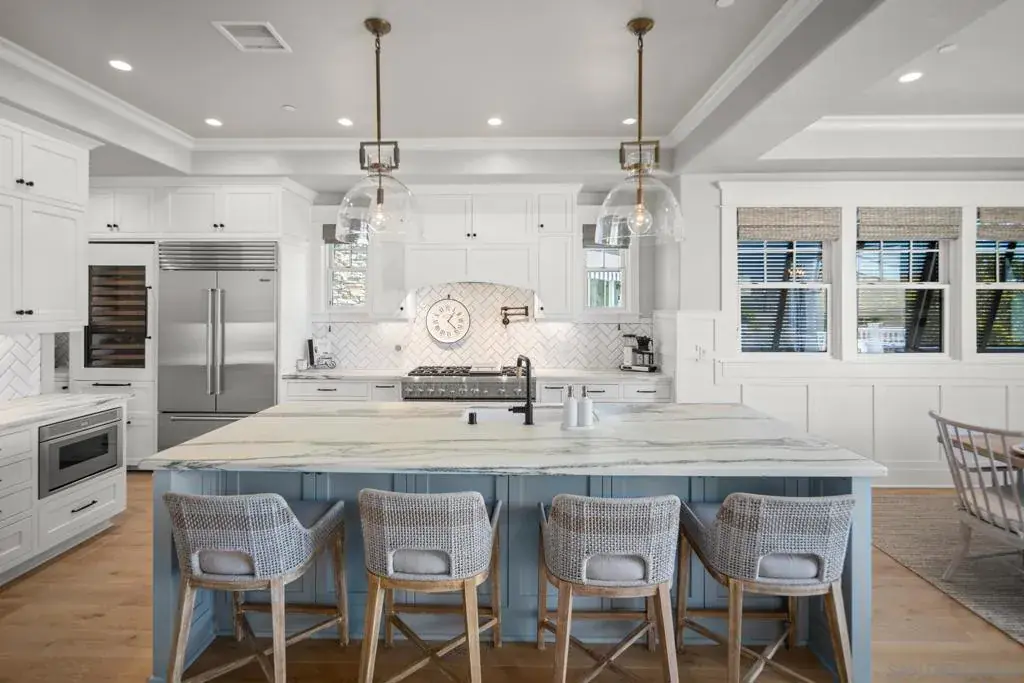 OCEAN VIEWS, WALK TO BEACH AND TOWN, NEWER CONSTRUCTION! Located in the most idyllic and central location in Coronado, this is 4200 square feet of absolute perfection! Designed with exceptional detail & style featuring 4 gorgeous bedroom suites, 7 bathrooms (yes, 7), with Family room & full bar and game room! Epic reverse floor plan design allows for Ocean views on 2 levels. Open great room featuring chef’s kitchen w/large center island, high-end appliances, all opening to living & dining. Roof deck is the perfect gathering place for evening sunsets & happy hour! Fire pit, wet bar in lower level, garage, 2 washers / 2 dryers, ping pong table, outdoor kitchen, elevator to all levels (including rooftop access), the list is endless! Enter the main level in the expansive foyer area and 2 private en suite bedrooms. Upstairs encompasses a large kitchen/dining/living great room, complete with marble fireplace, doors out to deck (with ocean views), and a second junior master suite. The kitchen is spectacular with soapstone countertops, large center island, butlers pantry, wine refrigerator and top of the line appliances. Continue upstairs to the 3rd floor rooftop deck with marble and stainless outdoor kitchen, powder room, lounge chairs and patio dining table. Watch the waves and enjoy the sunset! The lower level has a wet bar and den, a bedroom and bathroom, along with the ping pong table! This is the perfect getaway for kids and/or guests to have their own space! Amazing home and prime village / beach location!
