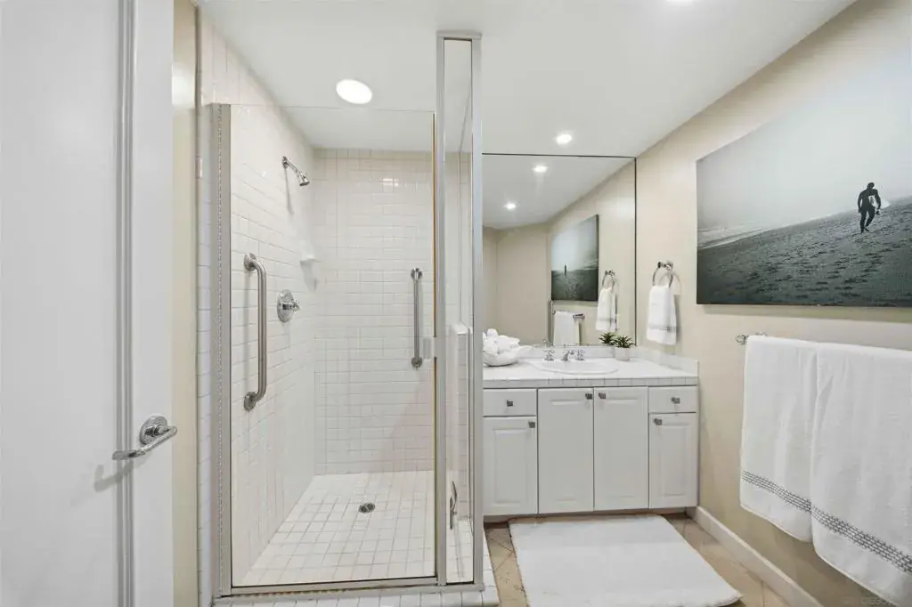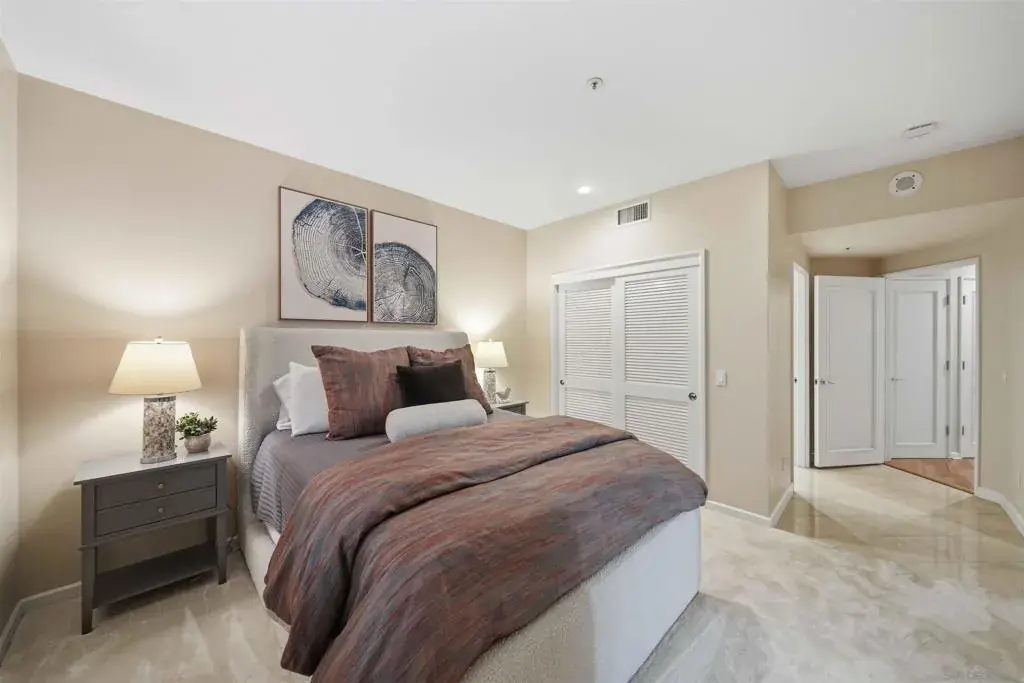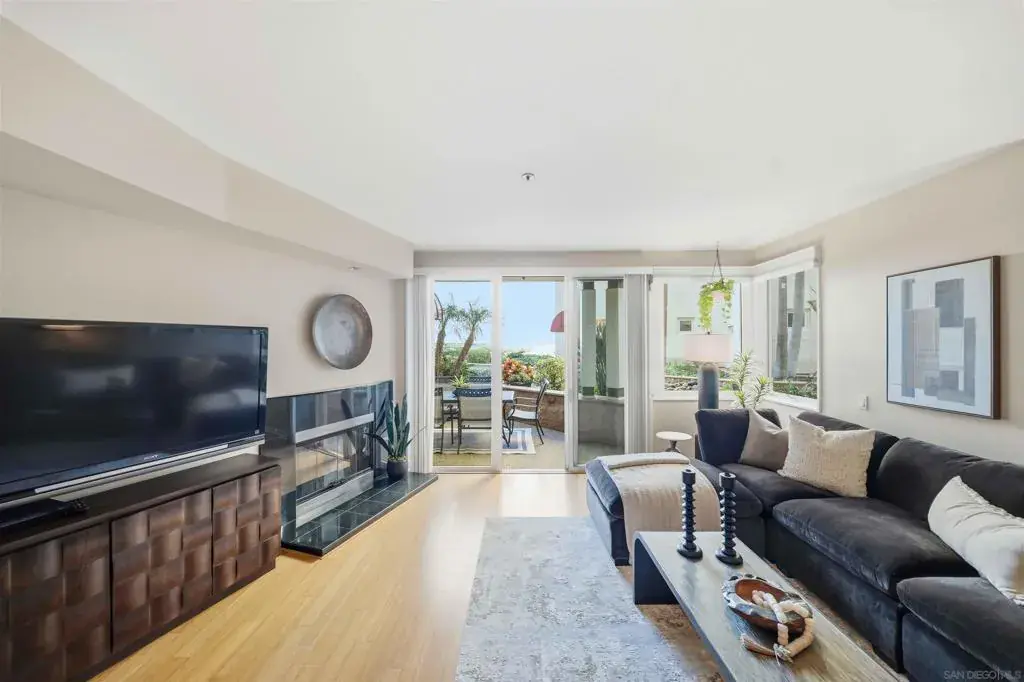 Welcome to Coronado Point—one of Coronado Island’s most coveted bayfront addresses—where sophisticated design meets effortless coastal living. This rarely available first-floor residence captures tranquil San Diego skyline and bay views, offering a seamless blend of comfort and style across approximately 1,849 square feet with two bedrooms and 2.5 baths. Three separate and exclusive outdoor patios allow incredible opportunities to entertain, unwind, or simply catch breathtaking views and fresh air. The heart of the home is a chef’s kitchen featuring a Sub-Zero refrigerator, Dacor cooktop, granite countertops, and abundant storage—ideal for both everyday living and entertaining. Open-concept living and dining spaces, thoughtfully styled to enhance flow and natural light, extend effortlessly to a generous patio with bay and downtown vistas, while a cozy gas fireplace adds warmth and ambiance. The primary suite offers private patio access and a spa-like bathroom retreat, while the additional bedroom provides flexible space for guests or a home office. Residents of Coronado Point enjoy resort-style amenities including a bayside pool and spa with BBQ, a well-equipped fitness center, private storage, and two secured parking spaces. Just outside your door, enjoy Tidelands Park, scenic waterfront paths, gourmet dining, and boutique shopping—all within an easy stroll. Whether you’re seeking a full-time coastal residence or a refined lock-and-leave getaway, this move-in-ready home offers an exceptional combination of privacy, convenience, and iconic Coronado charm.