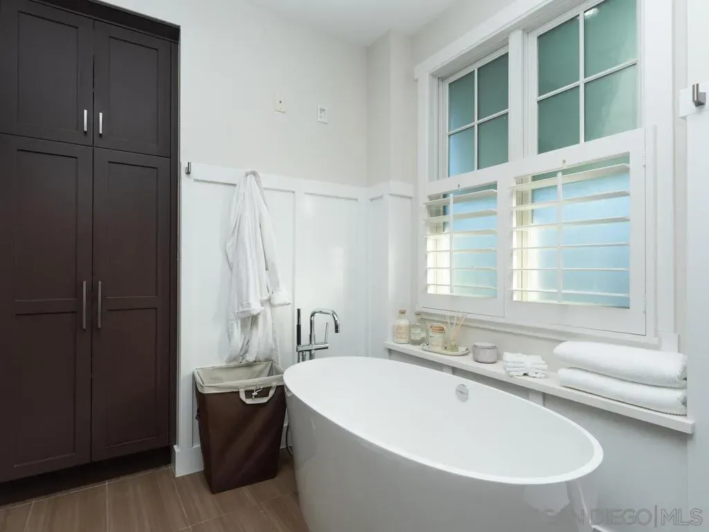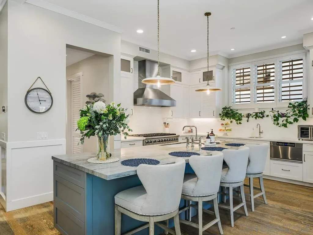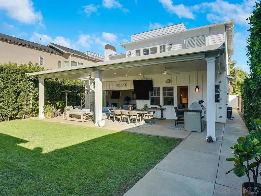 120 I Avenue presents a compelling opportunity to acquire one of Coronado’s premier custom residences. Ideally situated just steps from the bay and across from Bay View Park, the home blends architectural presence, refined coastal interiors, and exceptional indoor-outdoor living—along with rare parking capacity for up to six vehicles, including a detached two-car garage, two covered spaces, and additional off-alley parking. The thoughtfully designed main level features engineered wood flooring, formal dining, and a chef’s kitchen with premium appliances, quartz countertops, and a generous center island opening seamlessly to the living area with fireplace and covered patio complete with built-in BBQ and grassy yard. A first-floor bedroom suite offers flexibility for guests or multigenerational living. Upstairs, three additional en-suite bedrooms include a luxurious primary retreat with fireplace, spa-inspired bath with soaking tub and rain shower, walk-in closet, and private balcony. Two secondary suites open to a covered veranda, while the expansive rooftop deck—accessible from both levels—serves as a true highlight of the home, capturing sweeping views of the bay, Coronado Bridge, and downtown San Diego skyline. Additional highlights include surround sound, custom millwork, plantation shutters, security system, and alley access. Located moments from the ferry landing, shops, and dining, this residence delivers privacy, scale, and the best of Coronado living.
