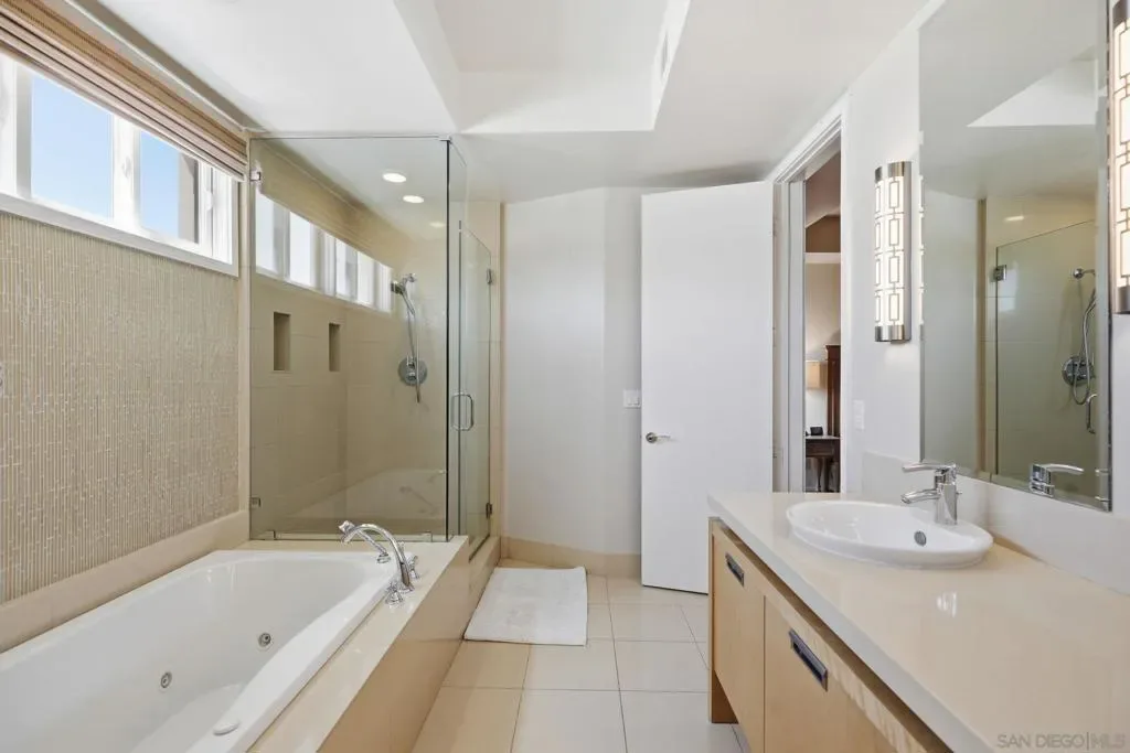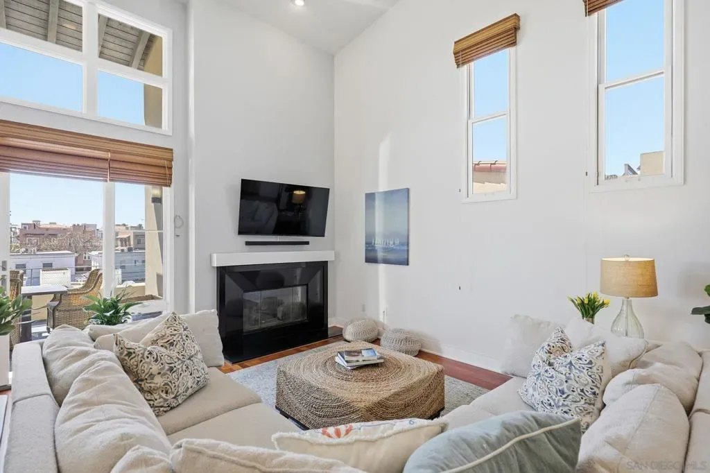 Beautiful, private and luxurious 2 bedroom + office/loft condo in the heart of Uptown Coronado Village. Corner unit with large windows and doors allows for natural light, custom kitchen with stainless appliances, vaulted ceilings, hardwood floors, 3 separate outdoor decks with views of the San Diego skyline, fireworks, San Diego bay and the Coronado Bridge- great for entertaining. Close to great restaurants, shops and Ferry Landing.