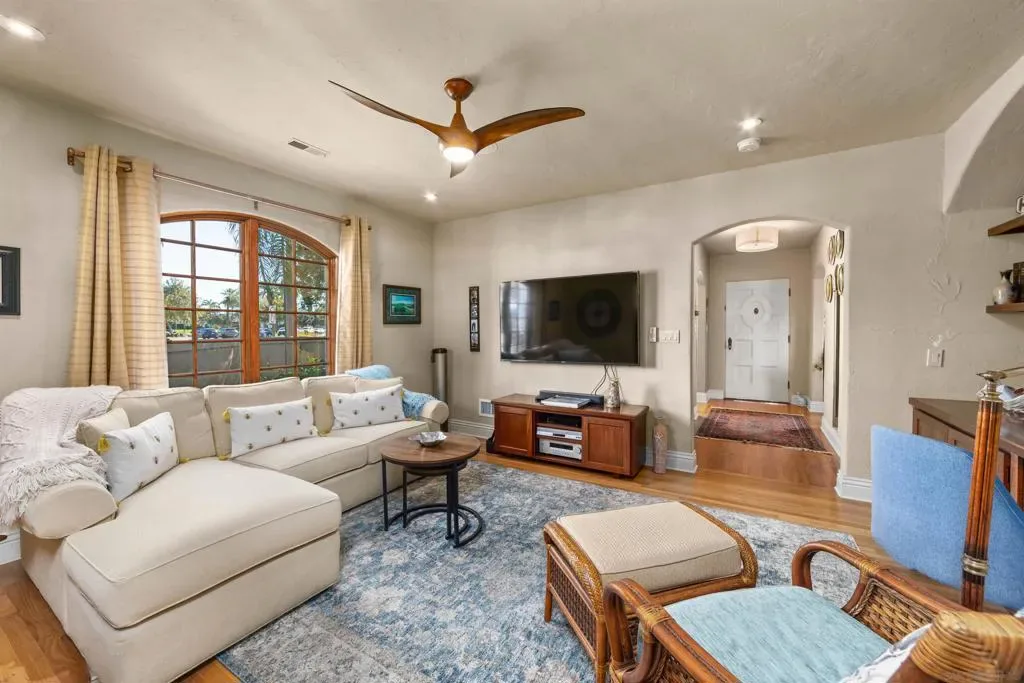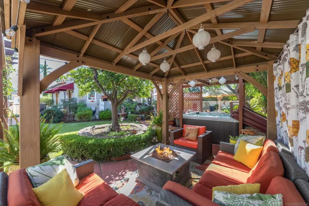 This beautiful home has an incredible outdoor living space, lush garden with rock waterfall feature, large Jacuzzi with a covered seating area, outdoor fire pit, BBQ, and plenty of dining and comfy seating to gather with friends and family members. Enjoy the light and airy feeling this home offers with hardwood flooring throughout. The first level has a formal living room complete with a fireplace and piano. There is also a family room/office with a built-in desk, T.V., and a split AC unit. The kitchen has stainless steel appliances, is well-stocked, and opens up to the dining room with french doors leading out to the backyard. There is also a full bath and a laundry room downstairs. The home has 3 bedrooms, all on the second level, and a full bath with a walk-in shower and a spacious bathtub. The primary bedroom has a queen-size bed, a fireplace, a T.V., a small sitting area, french doors leading out to a balcony, and a split AC unit. Bedroom 2 has a full-size bed and a T.V. Bedroom 3 has a twin trundle that can be used as two twin beds or a queen and a T.V. This home sits on a corner lot with plenty of off-street parking, including the driveway behind the garage. Bikes and beach amenities are ready for your use. The home is fully furnished and has everything you will need to completely relax and enjoy your Coronado vacation.