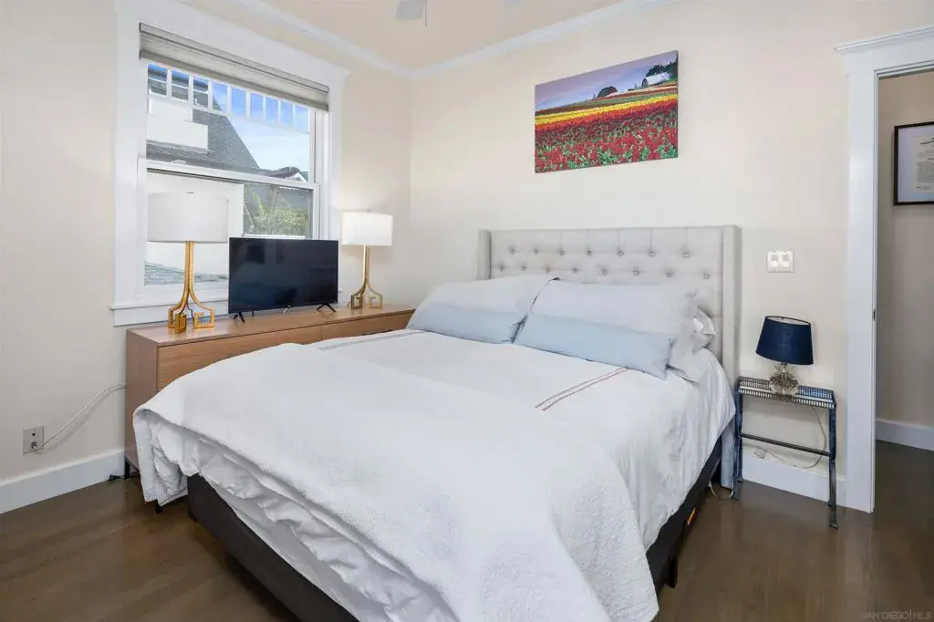 Wonderful location! This beautiful fully furnished, air-conditioned home boasts 3 bedrooms with an optional fourth being a third-level loft complete with a daybed with two twins and a window bed perfect for extra guests. The location is ideal for walking and/or biking to the beach and into town. Enjoy the outdoor seating on the front patio and balconies throughout the home. As you enter, there is a bedroom with a queen-size bed with its own bath along with an office and a stacked washer/dryer. Walk up the staircase to the second level where you will find an open and airy kitchen/dining/living room area with vaulted ceilings and wonderful lighting from all the windows. The kitchen has stainless steel appliances and a granite island with seating for 3 which opens up to the living room complete with a gas fireplace, TV, comfy window seat, built-in bookcase, and French doors leading to a balcony with seating. There are 2 additional bedrooms on the second level that share a bath, one has a queen-size bed with a TV, and a barn-style door that opens out to a balcony with seating. The other bedroom has a King size bed and also has a TV. The third level features a cozy loft with a twin trundle bed and a window seat/bed along with a desk. The home also has a BBQ, bikes, and all the beach amenities you will need to enjoy your Coronado vacation. Please Note: This is a back house on an alley with a detached home in front. Monthly rates vary depending on the season and length of the lease. January 2026 thru May 2026/ $9,500 June 1 – 26, 2026/ $13,500 JULY 2026 / RENTED August 2026 / $13,500 September thru December 2026/ $9,500