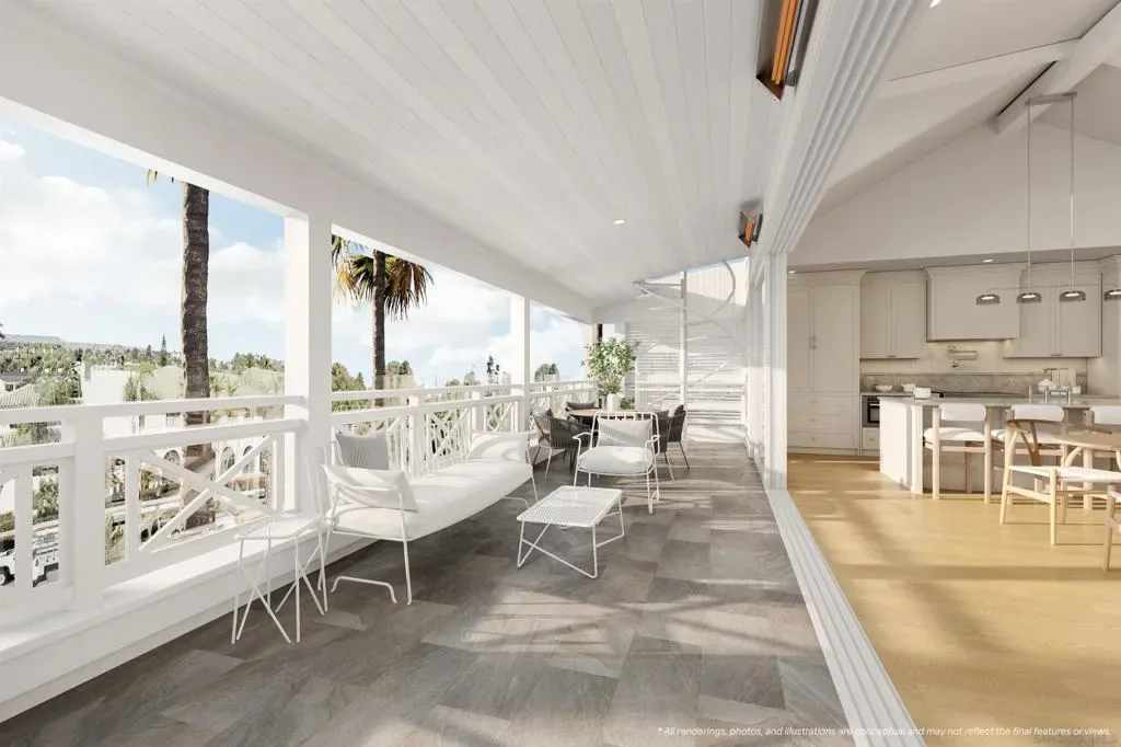 Welcome to THE GRAND, the new definition of luxury living in Coronado. This penthouse residence is defined by a magnificent terrace – a dramatic outdoor sanctuary designed for grand-scale entertaining, soirées, & seamless indoor-outdoor living. Above, a spacious rooftop deck elevates the experience even further. Complete with a two-car garage & storage, this home is designed to be both your serene escape & an unforgettable gathering place. Perfectly positioned in the heart of Coronado, enjoy front-row views of the 4th of July and Christmas parades, steps from Spreckels concerts and the island’s finest dining and downtown. Inspired by the timeless grandeur of Coronado’s architecture, THE GRAND was designed by AIA award winning architect Christian Rice. Residents will have an option to enjoy exclusive membership access to one of the world’s most celebrated beachfront resorts, the Del Club at the Hotel Del Coronado, seamlessly paired with the Hotel Del’s resort-style amenities creating a natural extension of luxury living*. More than a residence. A private retreat. A lifestyle beyond compare. The Grand Coronado, a boutique collection of 12 luxury residences masterfully designed by AIA award winning architect Christian Rice. Each home offers its own unique features, allowing you to choose the residence that best fits your lifestyle. Each residence offers single-level living for exceptional comfort and ease. The building includes a central elevator, with three select residences enjoying direct, private elevator access. Additional conveniences include a trash chute, dedicated storage spaces, and thoughtfully planned parking. Each residence includes two parking spaces, with a mix of private two-car garages and tandem configurations. The floorplans are exceptionally well designed, with 11 of the 12 residences offering three bedrooms, and featuring 2.5 or 3 bathrooms, all en-suite. Only three exclusive residences boast private rooftop decks, offering elevated outdoor living and captivating views. Every residence is turn-key, brand new, and impeccably appointed, showcasing a curated collection of elevated design elements…warm, sophisticated neutral palettes, premium quartz surfaces, polished nickel fixtures, heated bathroom floors for year-round indulgence, and customized designer-selected finishes throughout. HOA dues are estimated at $1,000 per month. Perfectly situated near everything that defines the Coronado lifestyle, The Grand offers a rare opportunity to enjoy luxury, convenience, and timeless design in one of the most desirable locations on the island. Estimated completion summer 2026. Materials, specifications, plans, pricing, designs, schedules, and delivery dates may change without prior notice. All renderings, photos, and illustrations are conceptual and may not reflect the final features or views. The information provided is not guaranteed to be accurate, complete, or suitable for any particular purpose. * Del Club membership is contingent upon approval by the Del Club and shall be at The Del Club’s discretion.