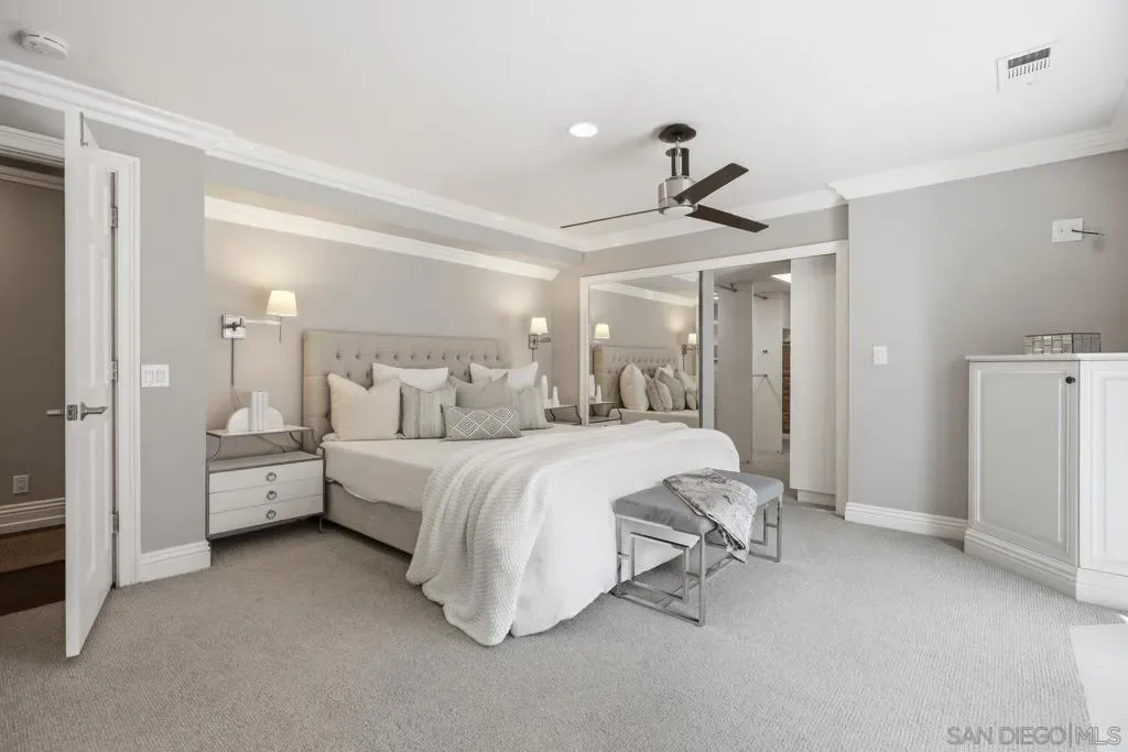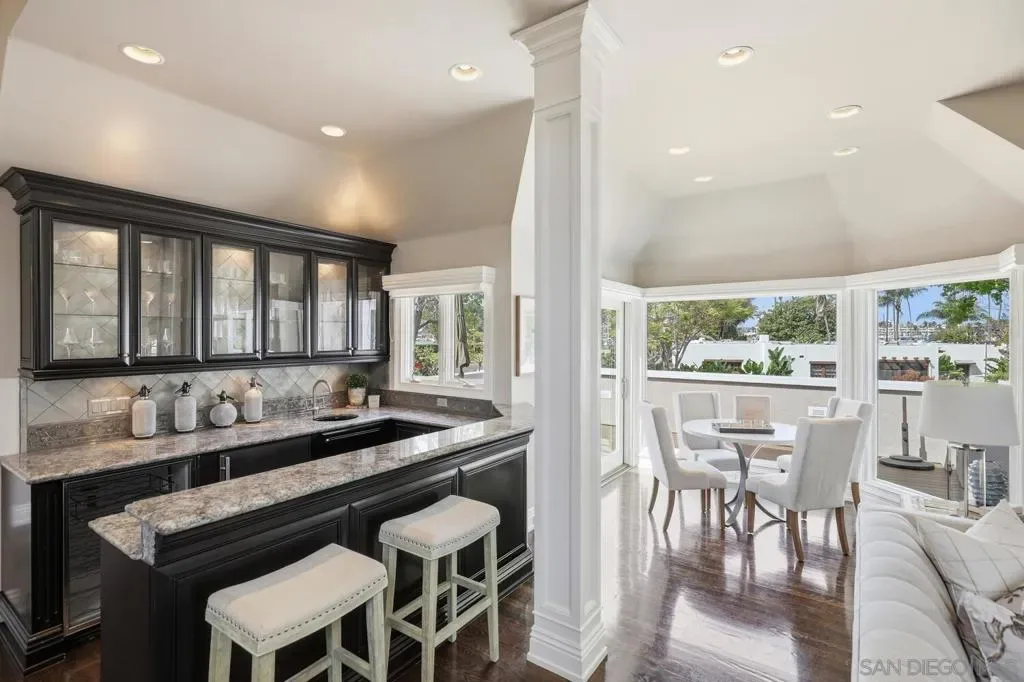 A rare opportunity to own a truly special home in the heart of Coronado, this exceptional residence blends timeless elegance with thoughtful design and an unbeatable location. Tucked away on a quiet street just across from Bay Circle Park, the home offers a peaceful setting while remaining moments from the best of the island.Designed with a reverse floorplan to maximize its breathtaking surroundings, the upper level showcases a stunning view deck with sweeping vistas of Glorietta Bay, the Coronado Golf Course, and the iconic Hotel del Coronado. It’s the perfect setting for entertaining or simply enjoying Coronado’s signature sunsets.Inside, the home features four spacious en-suite bedrooms and a functional office, including a full bedroom and bath on the main living level, complemented by a versatile loft—ideal for guests, a home office, or additional lounge space. Vaulted ceilings and expansive windows fill the living areas with natural light, creating a bright and airy ambiance throughout. A formal living room and separate great room provide both elegant entertaining spaces and comfortable everyday living.The primary suite is a true retreat, highlighted by incredible dual closets offering abundant storage and a sense of luxury. Opening to a private backyard, a perfect sanctuary to enjoy the sunshine and breezes.Every detail has been thoughtfully curated to enhance both functionality and style, resulting in a home that feels elevated yet welcoming.With its premier location, exceptional layout, and captivating views, this is an amazing opportunity!