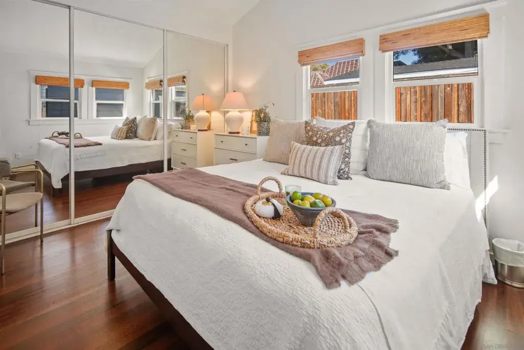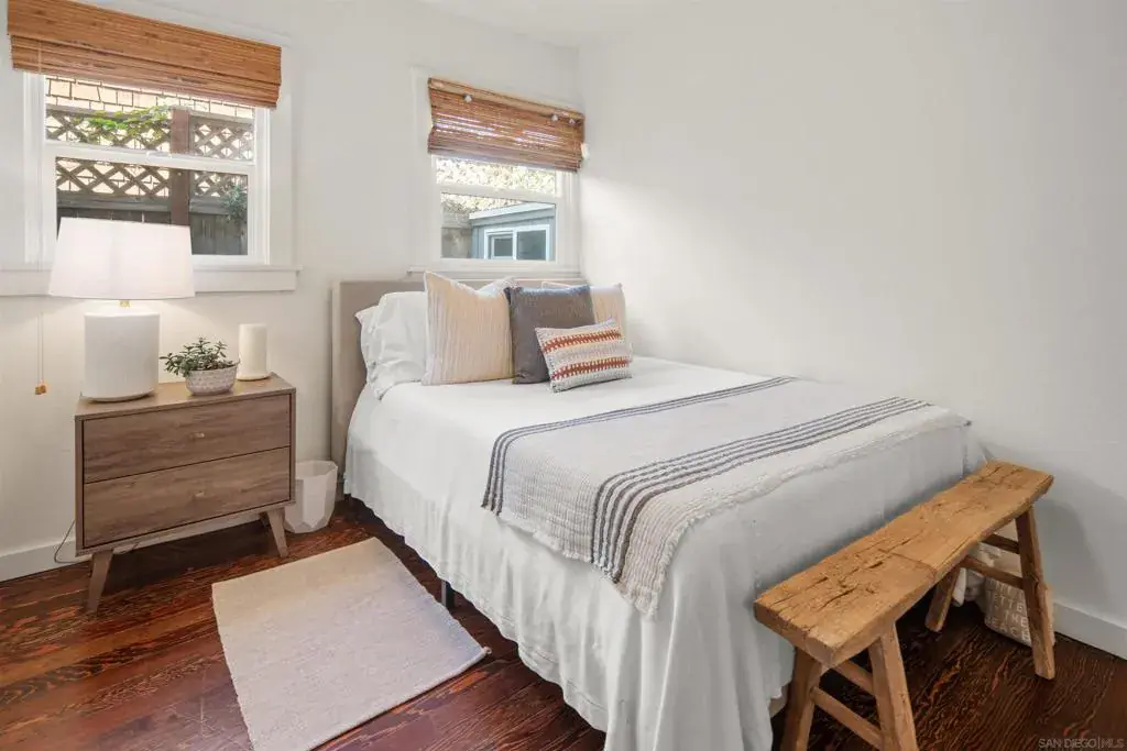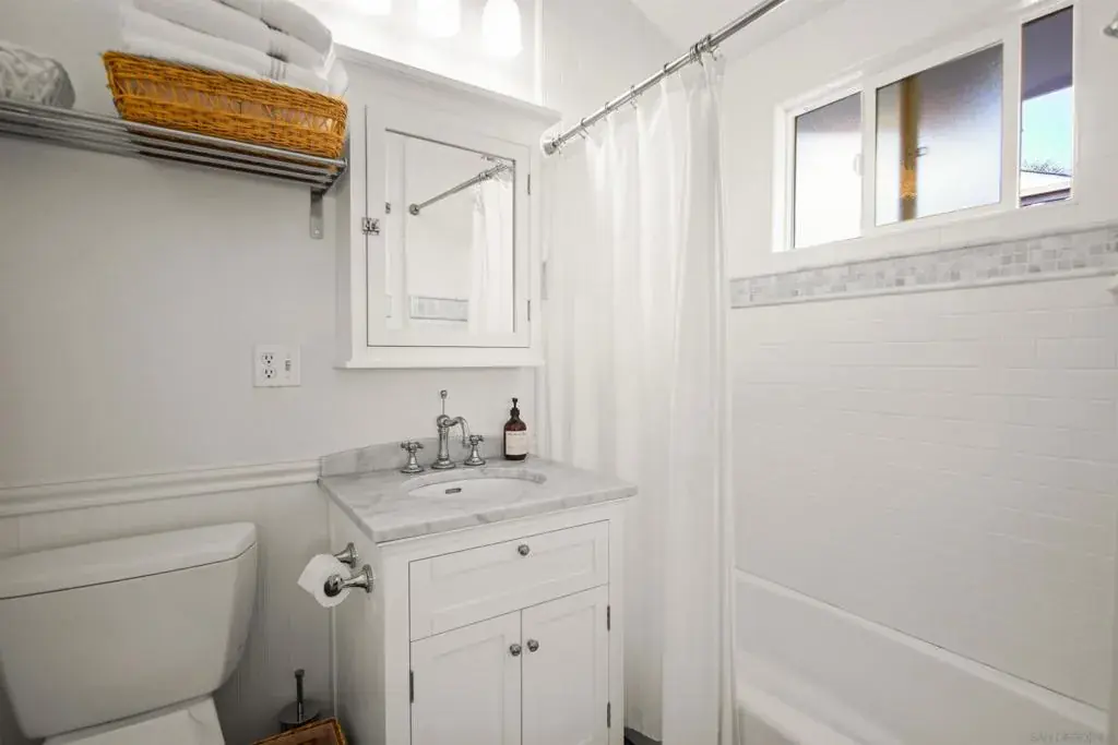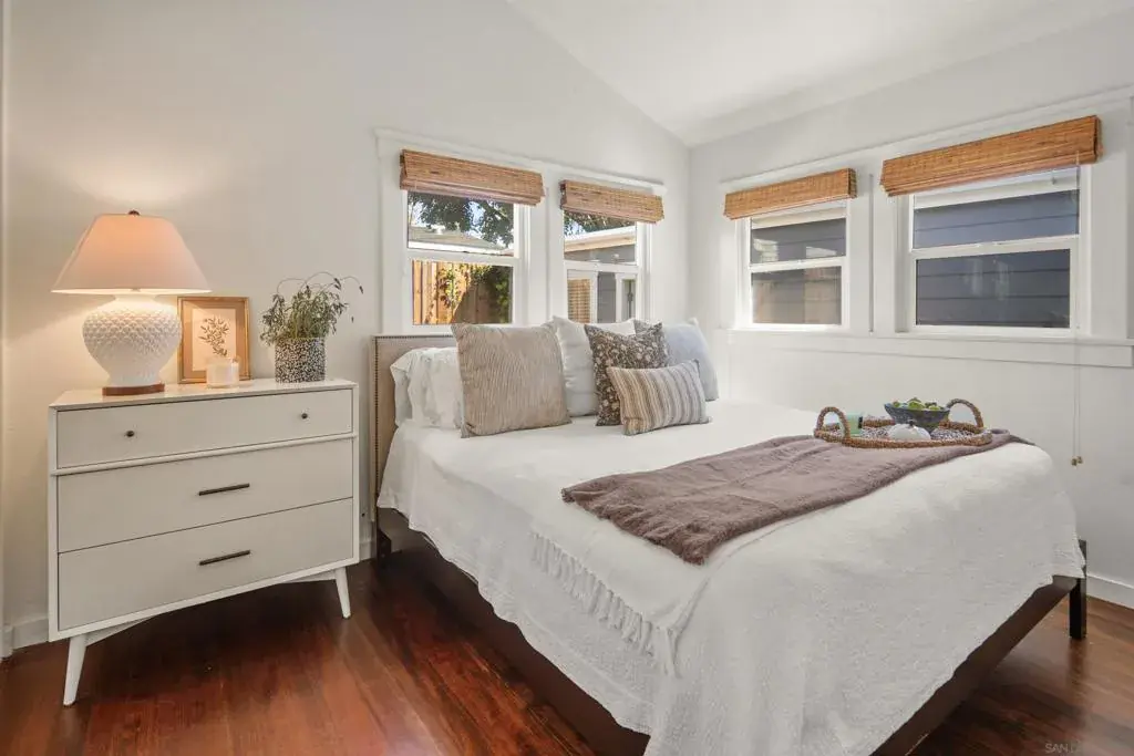 Charming remodeled Beach Cottage – Just 2 Blocks from the Ocean! Step into summer in this beautifully renovated 1929 beach cottage, perfectly located just two blocks from the sand and surf. This charming retreat blends historic character with modern comfort, featuring hardwood flooring throughout, central AC, and 3 spacious bedrooms, each with its own en suite bath, ensuring privacy and convenience for all guests. Relax in the cozy living room, complete with a pull-out sofa, or gather around the dining table with seating for six to enjoy meals together. The warm and inviting kitchen is fully stocked, making it easy to whip up beachside snacks or gourmet dinners. Start your mornings with coffee on the front patio, soak up the sun on the nearby beach, or take a sunset cruise on the provided bikes. In the evenings, fire up the BBQ and enjoy meals in the backyard patio area, creating the perfect setting for outdoor dining and relaxation. We’ve got everything you need for a stress-free vacation— bikes, beach chairs, an outdoor shower, and even space to park a golf cart! Sleeping Arrangements: Bedroom 1 – King bed Bedroom 2 – Queen bed Bedroom 3 – Queen bed (Located in a separate structure just outside the kitchen door, sharing the backyard patio area with the main home.) Whether you’re looking for a relaxing getaway or an adventure-filled escape, this beachside gem is the perfect place to make summer memories!