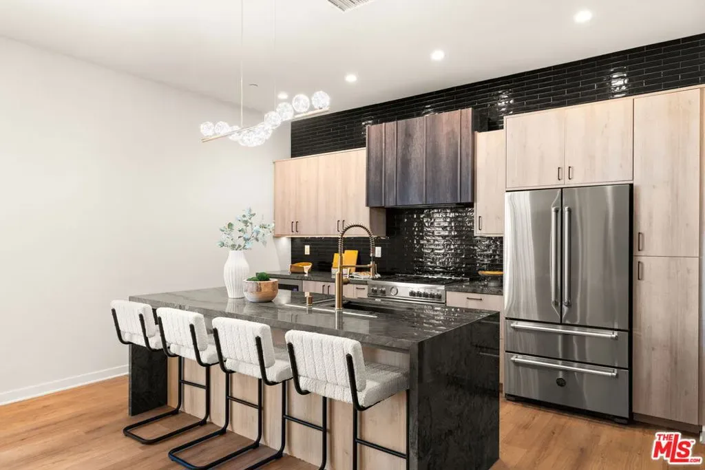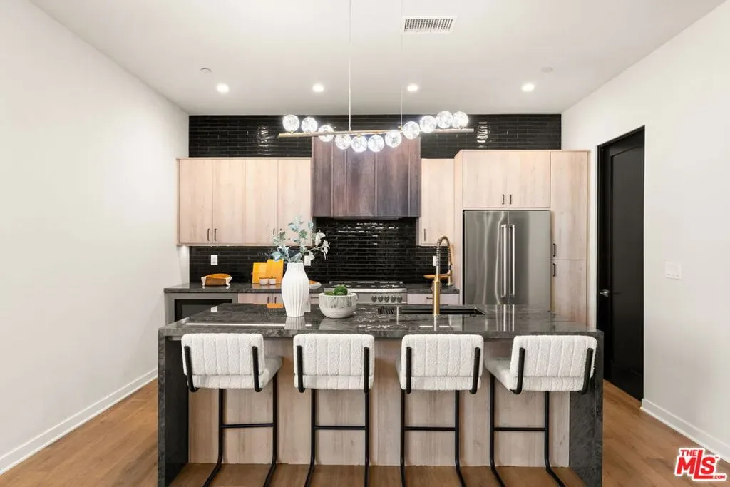 Step into refined loft-style luxury living in the heart of Costa Mesa, where this exceptional home is designed to impress. Ideally located near Triangle Square, you’ll have effortless access to top-tier dining, shopping, and entertainment, while remaining just minutes from Newport Beach, Lido Village, and John Wayne Airport. Inside, dramatic 12-foot ceilings and sleek, modern finishes create a bright and open ambiance. The second floor serves as the heart of the home, showcasing a chef’s kitchen equipped with premium Bertazzoni appliances, custom cabinetry, and elegant quartzite countertops. Warm vinyl flooring flows throughout, complementing the open-concept layout that seamlessly connects the kitchen, dining, and living areas. A cozy office or sitting nook provides a private retreat, while the adjoining space is thoughtfully designed as a refined cigar lounge or wine cellar – perfect for elevated in-home enjoyment. The third level unveils a thoughtfully designed retreat, where three spacious bedrooms and two bathrooms reflect a careful attention to detail throughout. The luxurious primary suite offers a serene escape, featuring an oversized walk-in closet and a spa-inspired bathroom with dual vanities and a generously sized walk-in shower. Just beyond, an expansive private rooftop patio invites you to unwind amid ocean breezes and sweeping city-light views. Two additional well-appointed bedrooms and a full bathroom complete this elevated living space with both comfort and style. Thoughtfully designed to balance comfort and functionality, the home is equipped with fire sprinklers on every level, offering an added layer of peace of mind. Car enthusiasts will appreciate the impressive two-car garage, distinguished by soaring 13-foot ceilings and a sleek epoxy finish. Upon entry, you’ll also find a well-appointed laundry area and two spacious storage rooms, enhancing everyday convenience. Blending luxury, versatility, and an exceptional location, this distinctive residence is truly best appreciated in person.