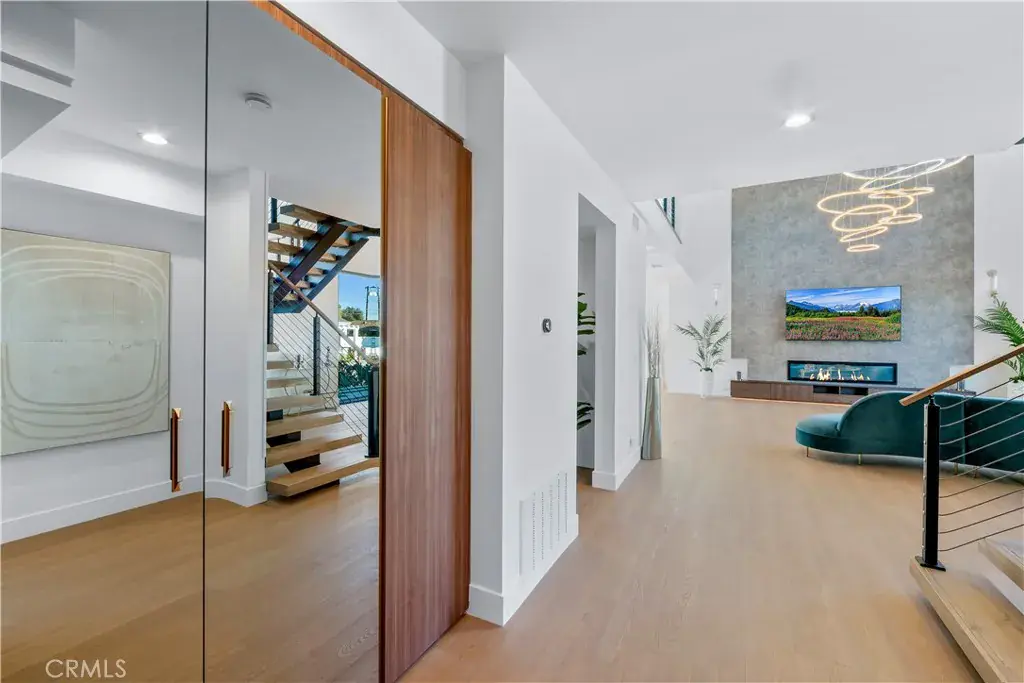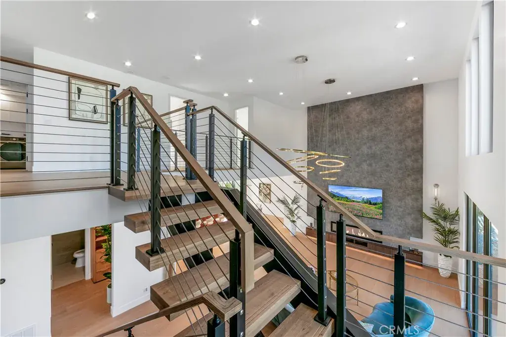 The open-concept layout showcases high ceilings, abundant natural light, and a sleek modern aesthetic. The stunning custom kitchen includes hidden kitchen, brand-new high-efficiency appliances, and premium finishes throughout. A large loft with balcony access adds flexible living space.