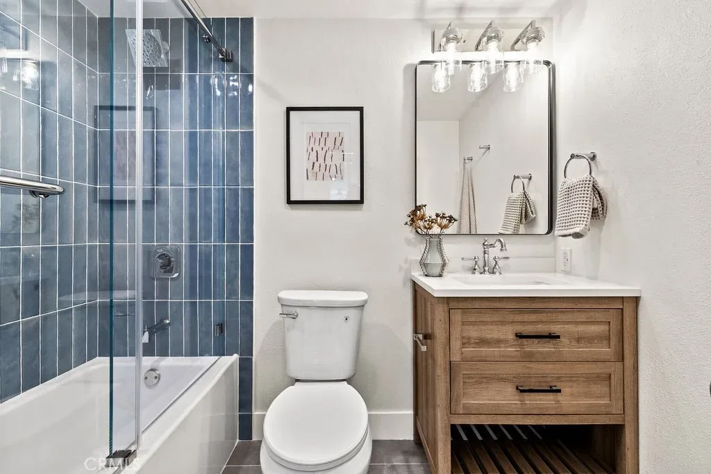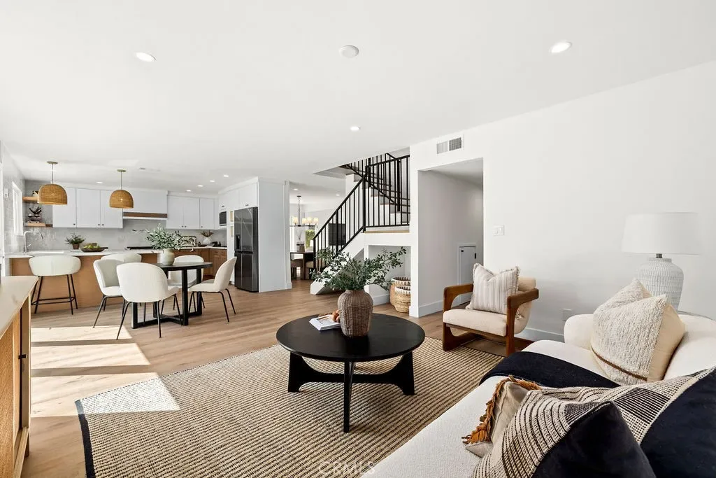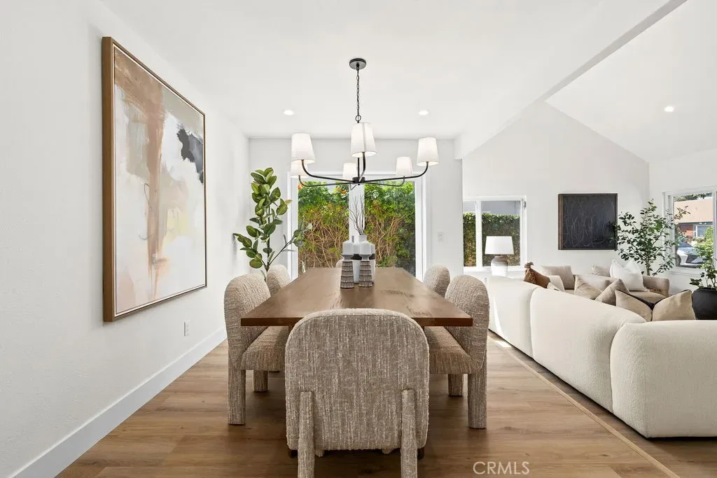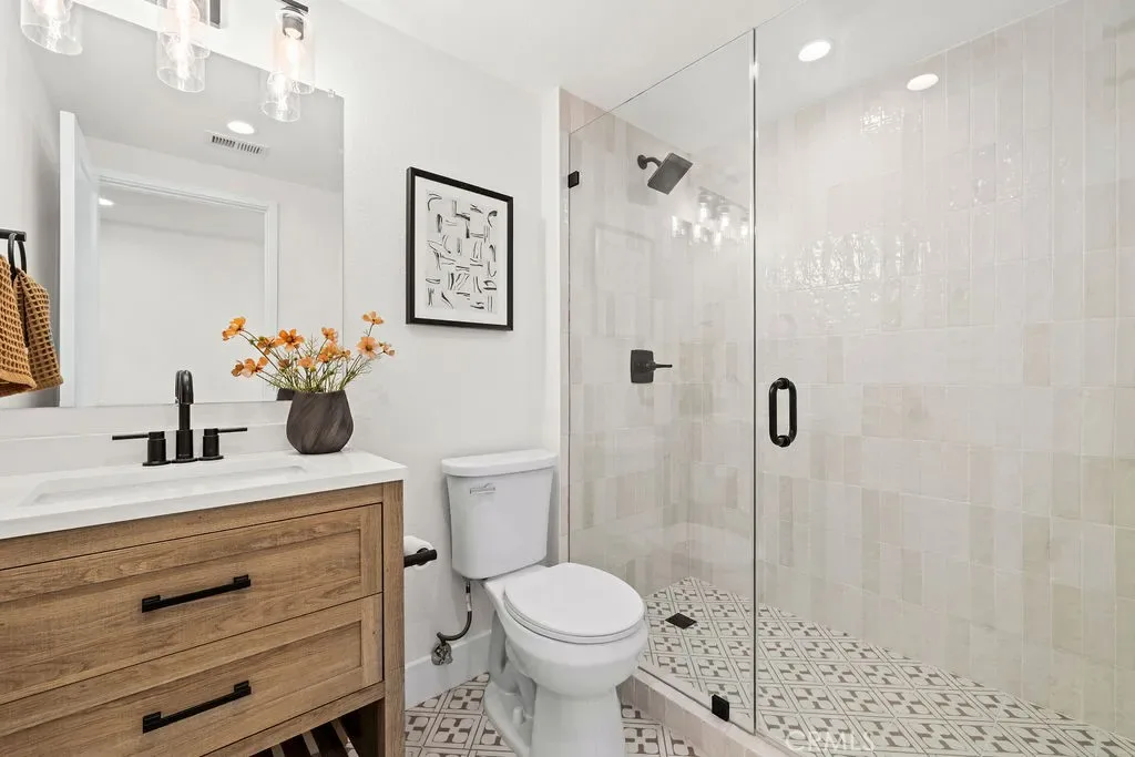 Tucked away on a quiet cul-de-sac in the highly desirable South Coast Metro area, this completely remodeled 5-bedroom, 3-bath residence offers approximately 2,400 square feet of thoughtfully designed living space, and is perfectly suited for comfortable everyday living. Step inside to a bright open-concept floor plan highlighted by luxury plank flooring, vaulted ceilings, and an abundance of natural light that fills the living room, accented by a cozy fireplace. The formal dining room features new French doors that open to the spacious wrap around yard, creating a seamless indoor-outdoor connection. The beautifully renovated kitchen has been redesigned with modern finishes, showcasing striking two-tone cabinetry, sleek quartz countertops, stainless steel appliances, designer fixtures, generous counter space and a functional layout making it as practical as it is stylish. The kitchen flows seamlessly into the adjacent family room, creating a warm and inviting space ideal for everyday use and effortless entertaining. Open the newly expanded sliding doors into your private backyard retreat, where the best of Southern California living comes to life. A sparkling in-ground pool invites you to cool off on warm summer afternoons, while the beautifully designed outdoor spaces create the perfect setting for entertaining. Gather with friends for poolside dining, or relax beside the oversized fire pit with built-in seating, the ideal spot for evening conversations and unforgettable nights under the stars. A main-level bedroom and full bathroom provide excellent flexibility for guests, a home office, or multi-generational living. Upstairs, the spacious Primary Suite serves as a private retreat complete with an ensuite bath, walk in closets and private balcony. Three additional well-sized bedrooms, a full hall bathroom, and a versatile bonus room complete the second level, offering plenty of room for family, guests, or flexible workspace. Additional highlights include a 3-car attached garage, upgraded PEX plumbing, artificial turn/lawn and a tankless water heater, that offer both modern comfort and efficiency. Ideally located near the 405, 55, and 73 freeways, this home is just minutes from world-class shopping, dining, and entertainment at South Coast Plaza, along with nearby parks and beaches. Offering the perfect blend of style, space, and location, this Costa Mesa gem presents an exceptional opportunity in one of Orange County’s most sought-after communities.