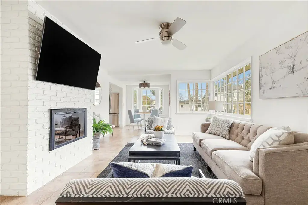 Tucked at the end of a quiet cul-de-sac in the coveted Cambridge Estates neighborhood, 469 Lenwood Circle offers a rare blend of warmth, character, and coastal living. Spanning 2,721 square feet, this four-bedroom, three-bath residence is both timeless and inviting from the moment you arrive, welcomed by a charming Dutch door that sets the tone for what’s inside. The main living room is a true centerpiece, featuring soaring vaulted wood-beamed ceilings, a striking brick fireplace, and multiple sets of French doors that open effortlessly to the private backyard, creating an easy indoor-outdoor flow ideal for everyday living and entertaining alike. The kitchen is thoughtfully designed with beautiful natural stone countertops, a sunlit breakfast nook, and seamless connection to a dedicated formal dining room, complete with its own cozy fireplace for intimate gatherings. A secondary living room adds flexibility for relaxed lounging or play. The primary suite is conveniently located on the main level, overlooking the serene pool and private yard, offering a peaceful retreat tucked away from the rest of the home. Two additional bedrooms and a bathroom complete the first floor, while upstairs, a fourth bedroom and bathroom provide an ideal space for guests, a home office, or extended family. Outdoors, the backyard is designed for relaxed entertaining with ample space for dining al fresco, hosting friends, or simply lounging poolside. A thriving side-yard garden invites farm-to-table cooking and adds a thoughtful, lifestyle-driven touch to the property. Perfectly positioned near the vibrant shops, cafes, and restaurants of 17th Street, as well as Newport’s beaches, local parks, and award-winning schools, 469 Lenwood Circle offers the comfort of a quiet residential setting with effortless access to the best of Costa Mesa and Newport Beach living.