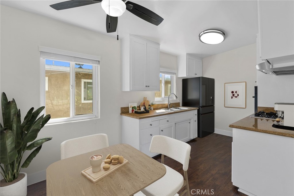 With modern architectural details, this light-filled home offers a seamless flow from room to room. The spacious layout features a large living room, a separate dining area, and two generously sized bedrooms with mirrored wardrobe doors. Finishes include hardwood flooring, granite countertops, a stainless steel gas range with built-in oven, refrigerator, and contemporary fixtures throughout. The beautifully landscaped grounds showcase mature palm trees and Birds of Paradise, creating a serene setting. The residence includes one assigned carport with storage and access to a community laundry facility. Ideally located near world-famous beaches, the scenic Back Bay trails, Lido’s premier boutique shopping, and the renowned dining along 17th Street—truly surrounded by everything you need.