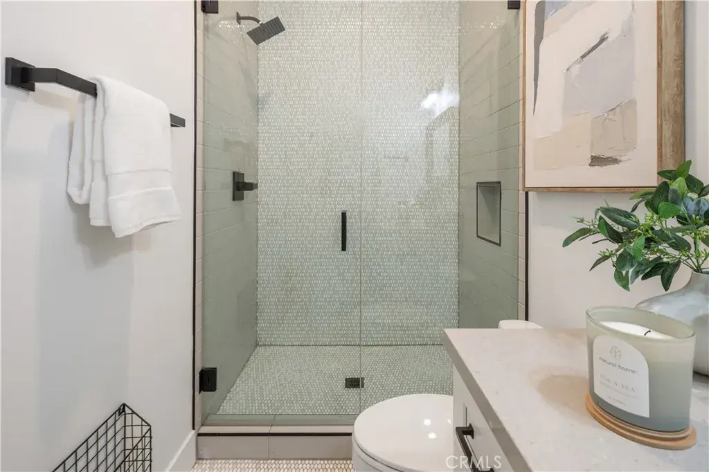 Located on a spacious corner lot in Eastside Costa Mesa, this exceptionally maintained home was built in 2019 and still feels fresh, stylish, and thoughtfully designed. The layout offers a true single-level living experience with all four bedrooms and three bathrooms on the main floor, complemented by ten-foot ceilings, wide-plank wood floors, and eight-foot interior doors throughout. The open-concept kitchen features a tumbled Carrara marble backsplash, walk-in pantry, KitchenAid Professional Series appliances, built-in wine fridge, and custom shelving. The primary suite is a true retreat, offering two oversized walk-in closets and a spa-inspired bathroom with marble floors, a Victoria and Albert soaking tub, and a full-length LED mirror. Above the garage, a generous 690 square foot bonus suite with its own entrance, bathroom, and dedicated air conditioning creates the perfect space for a guest suite, home office, gym, or creative studio. Energy-efficient upgrades include a solar panel system, Tesla batteries, tankless water heater, and 220V outlet in the garage for electric vehicle charging. The oversized two-car garage features an eight-foot roll-up door and has space to potentially fit a third vehicle. There is also dedicated parking for RV or boat parking. The exterior includes low-maintenance turf, mature fruit trees, a block wall for privacy, and space to add a pool. A covered front porch with a classic Dutch door offers charming curb appeal, and a nearly 700 square foot rooftop deck provides an additional private space for relaxing or entertaining. Ideally located near Newport Back Bay, the Orange County Fairgrounds, top-rated schools, and all that Eastside Costa Mesa has to offer.