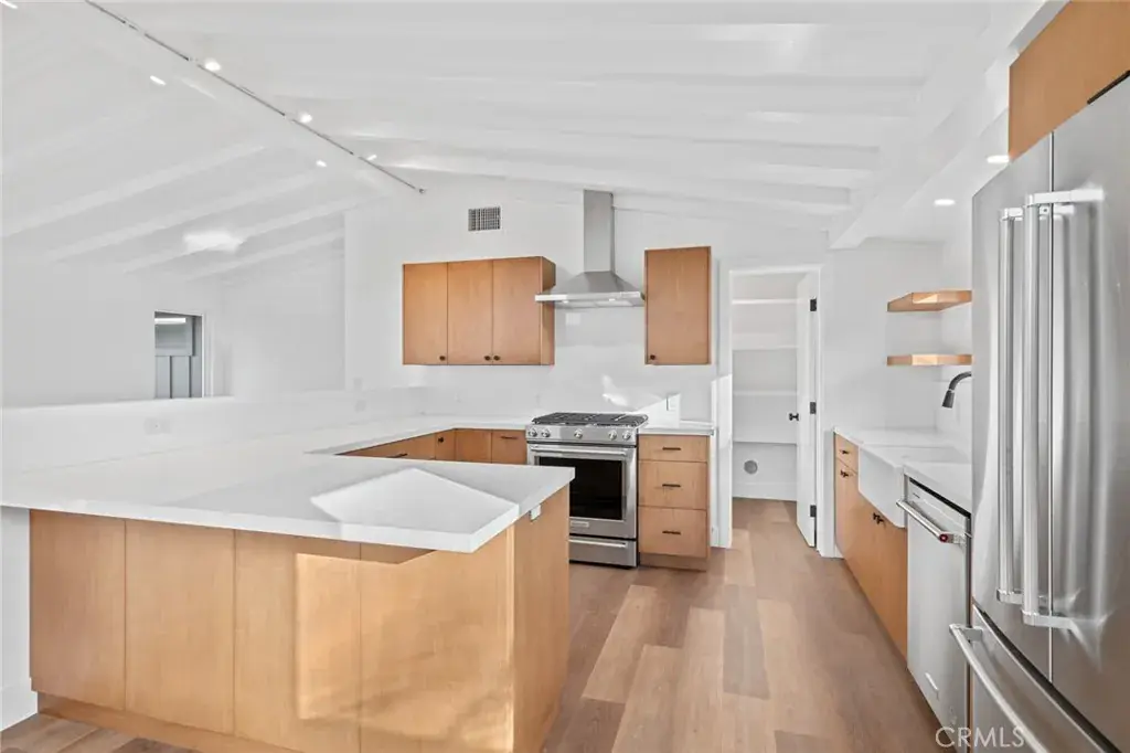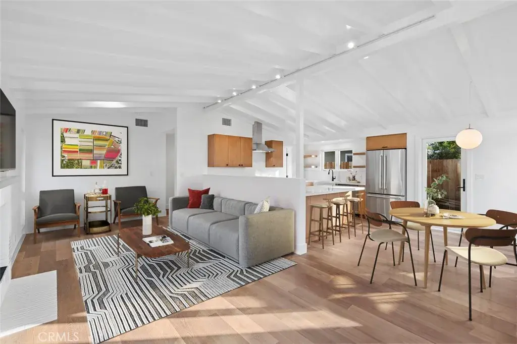 Revel in this remodeled and expanded Cliff May inspired Mid-Century Modern home with true indoor/outdoor Rancho style. The 2022 remodel doubled the livable square footage and left nothing undone, bringing the home up to today’s standards while honoring its architectural heritage. Open great room with kitchen, living, and dining, plus 3 bedrooms, 2.5 baths and a laundry room complete the interior. Roof, siding, windows & doors, flooring, electrical, kitchen & baths, AC and furnace, insulation, tankless hot water heater, and landscape/hardscape are all NEW. The home enjoys a low traffic, end of cul-de-sac location and a pie-shaped lot with huge backyard. The lucky owner has room to add a pool and/or ADU. Two outdoor patios beckon you to bask in Eastside Costa Mesa’s sun and ocean breezes. A detached 2-car garage is off the alley, along with an additional off street parking spot. The location can’t be beat with proximity to schools, parks, beaches, and amazing retail options. Truly a rare architectural gem! *NOTE: Several photos show virtual staging.