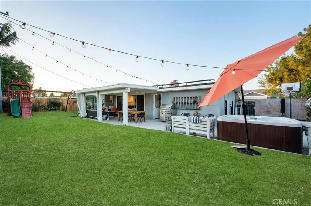 Welcome to 271 Rose Ln. your private escape in East Side Costa Mesa! Filled with charm, and nestled on its own oasis offering a beautiful remodeled home with a unique blend of luxury and comfort. As you step inside, you are greeted by a romantic living room featuring a vaulted ceiling, cozy fireplace set on a brick-wall, a large garden window which easily invites in natural light that overlooks an expansive front yard. Adjacent to this is the generously sized informal dining area that flows seamlessly to the stunning kitchen with quartz counter tops, stainless steel appliances, a convenient eating bar and ample cabinet space. There are 3 bedrooms all generously sized with the primary suite featuring a handsome bathroom with walk-in shower, and an pleasing vanity area. The second bathroom is simply gorgeous and sits perfectly within the house. The over-sized sliding doors off the main living area, introduces you to the heart of the home – the backyard. The expansive backyard presents a serene escape which is ideal for relaxing and enjoying the peaceful expansive space and of course, the jacuzzi. One of the best areas of this incredible property is the garage, an entertainers paradise with a pool table, a large TV and plenty of room for your friends and family to enjoy. Additional features include – wood flooring throughout, recessed lights and a playground area already built and ready to go. With plenty of parking it is never a hassle for your guests to come visit. Located in one of Orange County’s most sought-after neighborhoods, you are not too far from a variety of restaurants and shops. This East Costa Mesa gem, is not just a home, it is a lifestyle!!