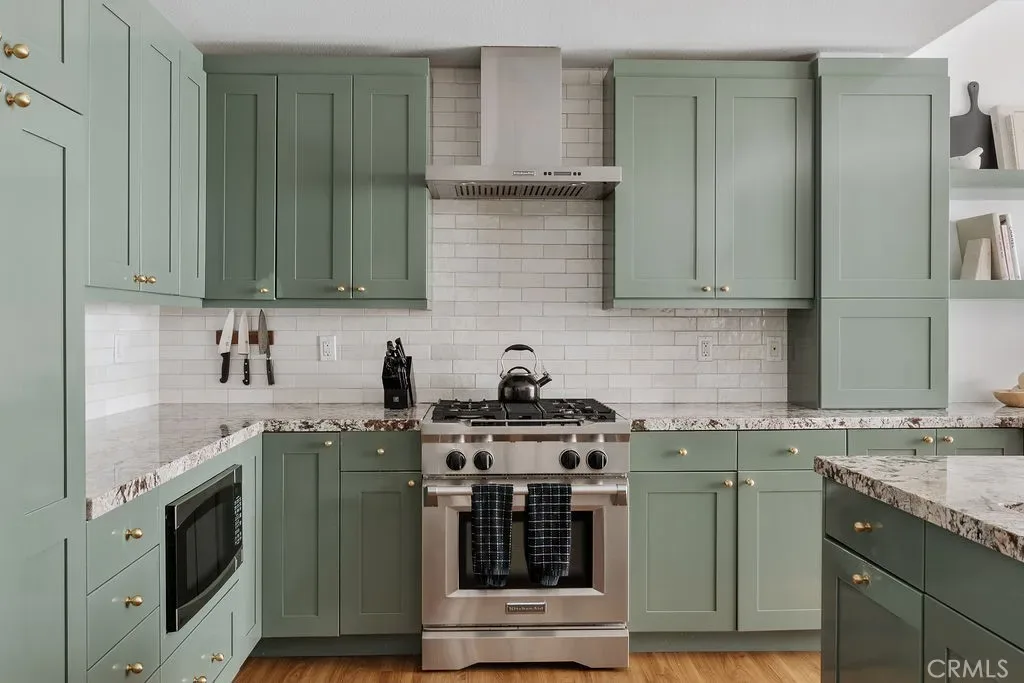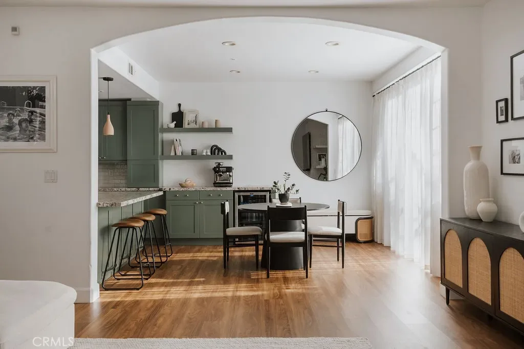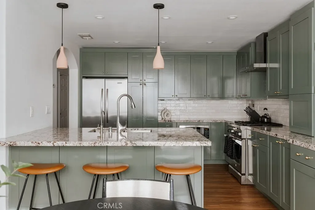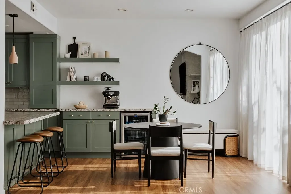 Inside, the home feels calm, cohesive, and filled with natural light from morning through afternoon. The kitchen anchors the space with sage cabinetry, stone countertops, and clean lines that feel current without trying too hard. It opens naturally to the living and dining areas, making everyday living easy and entertaining effortless. Once you see it, you’ll feel it.