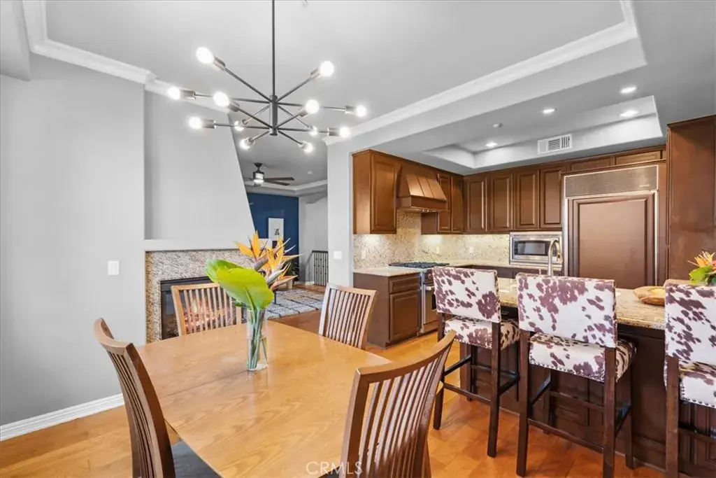 Welcome to Pacifica at Newport Plaza, a Mediterranean-inspired enclave where urban sophistication meets coastal living. This impeccably appointed two-level, 2-bedroom, 2.5-bath residence embodies the perfect blend of comfort, elegance, and modern luxury. The open-concept main level features coffered ceilings, custom paint, rich wood flooring, and a dual-sided fireplace, creating a warm and inviting ambiance. The chef’s kitchen is thoughtfully designed with premium Wolf and Sub-Zero appliances, offering both beauty and functionality for everyday living or effortless entertaining. Just beyond the main living area, a spacious balcony overlooks a lush, private greenbelt lending to an ideal setting for seamless indoor-outdoor living. The lower level showcases new premium carpet, a generously sized laundry room with storage, a guest suite with a full bath, and the primary bedroom retreat. The primary suite is a true sanctuary, featuring marble slab counters, dual sinks, an oversized soaking tub, walk-in shower, large walk-in closet, and a private patio perfect for morning coffee or evening relaxation. This residence is one of the few non–street-facing units, offering enhanced privacy and tranquility. Additional highlights include a detached two-car garage, secure guest parking, and elevator access to all main levels. The gated community offers resort-style amenities, including a pool, spa, and expansive greenbelt perfect for pets. Ideally situated just steps from some of Costa Mesa’s most acclaimed dining and nightlife including Social, Il Dolce, Eat Chow, Westwood Coast, Café Sevilla, and the Triangle Square entertainment district. Newport Beach, PCH, John Wayne Airport and the 55 freeway, are just minutes away offering the best of Orange County living.