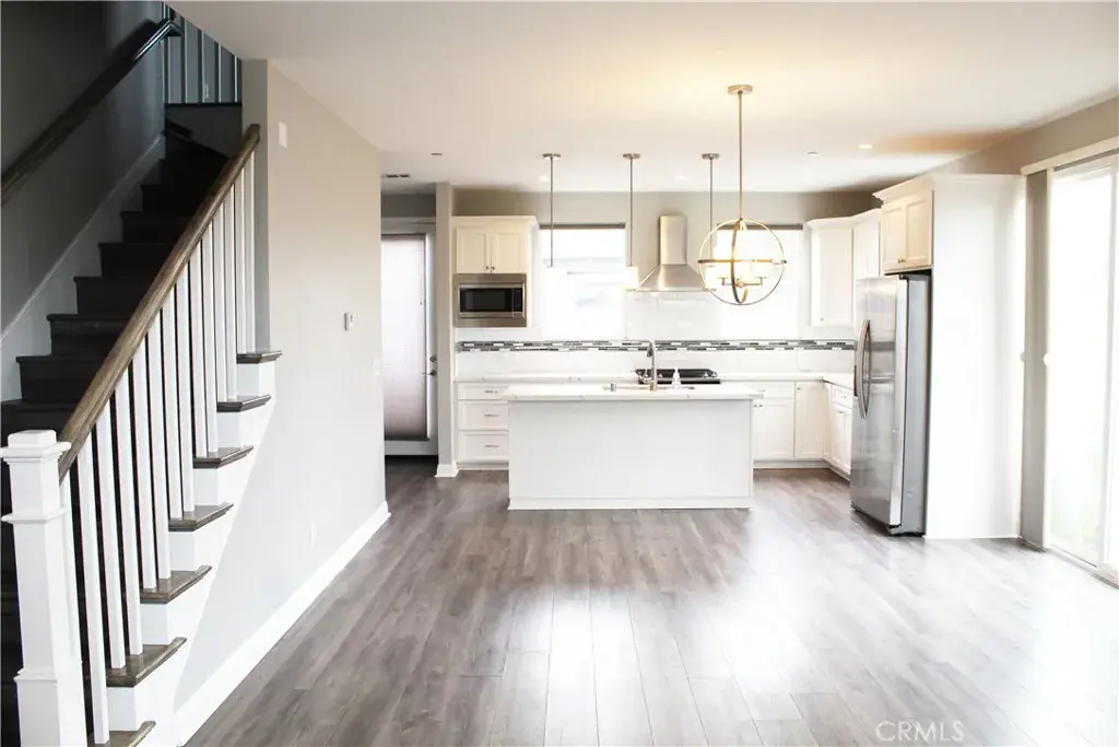 expansive open floor plan features a gourmet chef’s kitchen with soft close custom cabinet. The large bedroom and full bathroom on the first floor