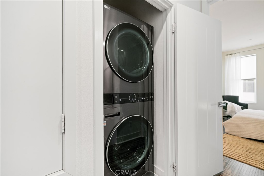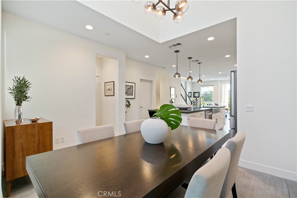 The gourmet kitchen is the heart of the home, showcasing a large quartz island, stainless steel appliances, custom cabinetry, and an oversized walk-in pantry offering exceptional storage. Designer lighting and thoughtful finishes elevate the space for both daily living and entertaining.