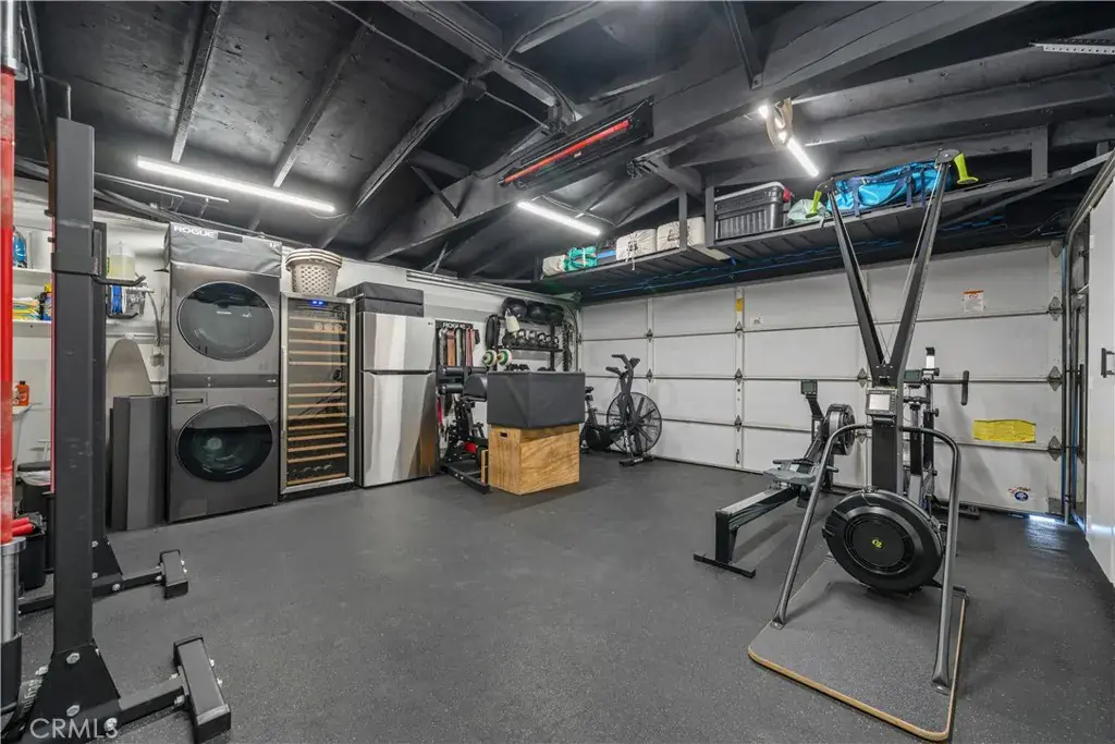 Even the garage has been elevated, with epoxy floors, built-in storage is currently being used as a convenient home gym . Smart features are woven throughout the home, including a Blink perimeter camera system, ADT security, video doorbell, interior door sensors, and a Nest thermostat.
