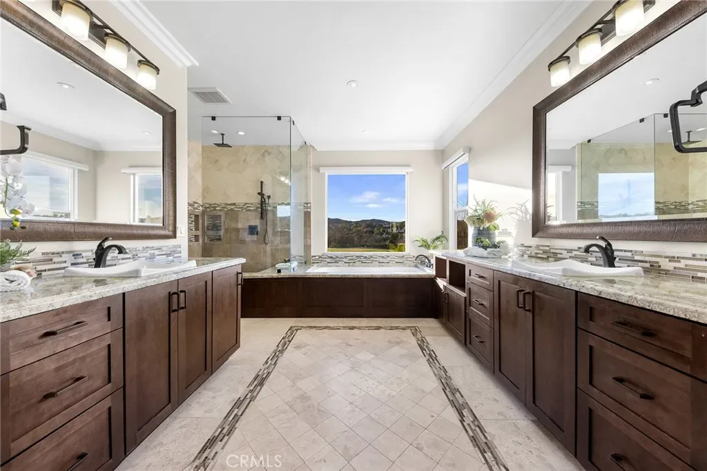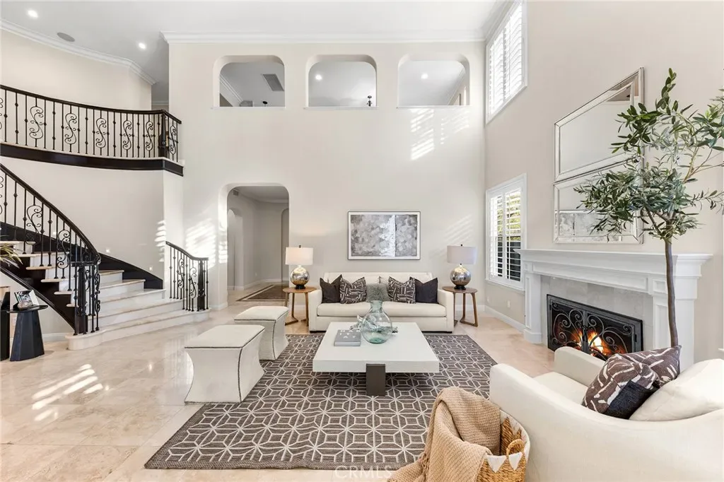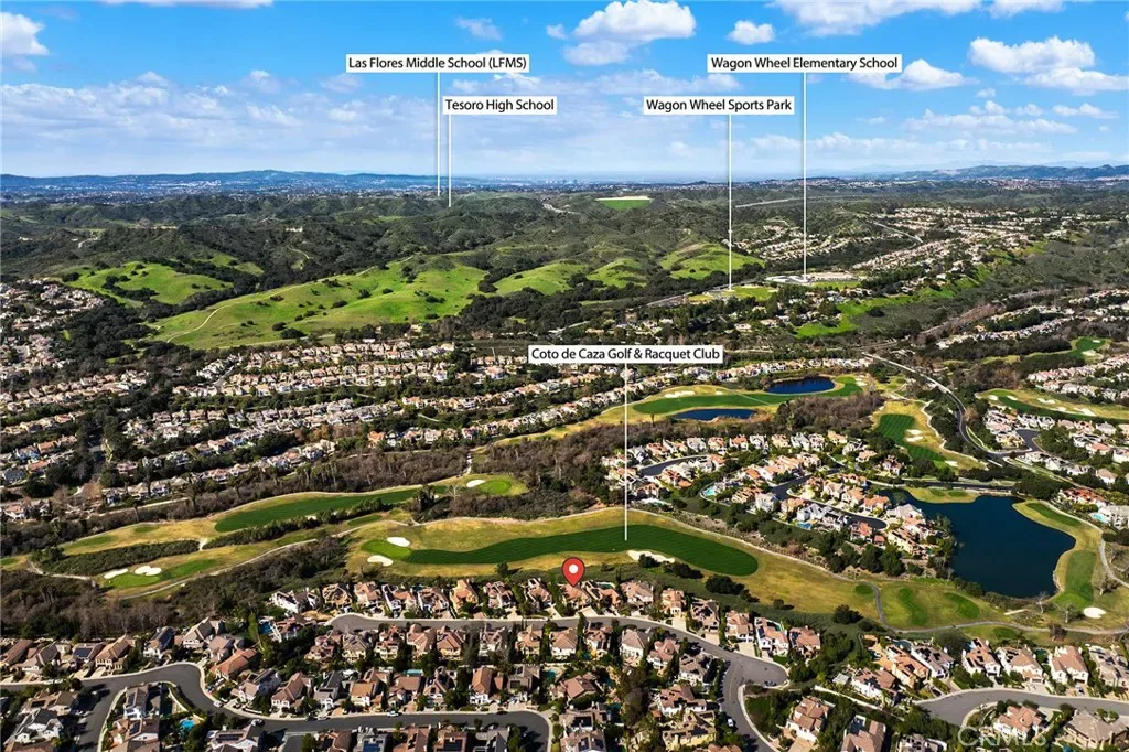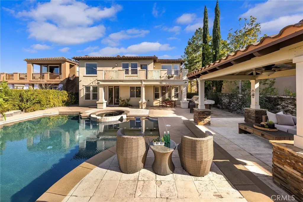Exceptional Fairway and Hillside Views! Rarely available fairway-front luxury residence on the 9th Fairway of Coto De Caza’s South Course, within prestigious 24-hour guard-gated community, offering panoramic golf course and hillside vista and meticulously designed resort-style backyard. This stunning estate showcases refined craftsmanship and premium materials increasingly rare in today’s new construction, w/ extensive upgrades throughout. Situated on approx. 8,401 sq ft lot, property offers approx. 4,398 sq ft of refined living space w/ 4 bedrooms, 4.5 bathrooms, dedicated downstairs office, and oversized upstairs loft. From formal entry, a beautifully finished foyer leads to private office w/ custom built-ins and stylish powder room, while formal living room is highlighted by soaring 2-story ceilings, dramatic fireplace and sweeping custom curved staircase w/ natural stone treads, ornate wrought-iron balustrades, and rich wood detailing. Gourmet kitchen showcases large center island w/ granite countertops, custom wood cabinetry, walk-in pantry, and full suite of high-end Viking appliances, flowing into two dining areas and grand family room w/ fireplace. Formal dining room opens to backyard through double doors, while kitchen and secondary dining area are surrounded by abundant windows capturing outdoor views. Desirable main-floor bedroom suite features en-suite bathroom and direct backyard access, ideal for guests or multigenerational living. Upstairs, the luxurious primary suite features a fireplace, a scenic retreat area, and a private balcony with breathtaking panoramic golf course and hillside vistas. The remodeled spa-inspired primary bathroom continues the stunning, unobstructed golf course views from the soaking tub and walk-in shower and includes a custom California Closets walk-in closet. Expansive upstairs loft w/ custom wet bar & stone accent wall. Two additional upstairs en-suite bedrooms offer spacious layouts and upgraded bathrooms, one w/ private balcony. A true resort-style oasis, the backyard offers PebbleTec pool & spa, built-in BBQ, and covered pavilion, all overlooking picturesque golf course & rolling hills, delivering an elevated luxury outdoor living experience. 3-car garage w/ custom-designed garage doors and epoxy flooring. Additional upgrades include a recently replaced HVAC system, brand new pool heater, whole house fan, water softening and kitchen filtration systems, plantation shutters and Hunter Douglas shades, and more!