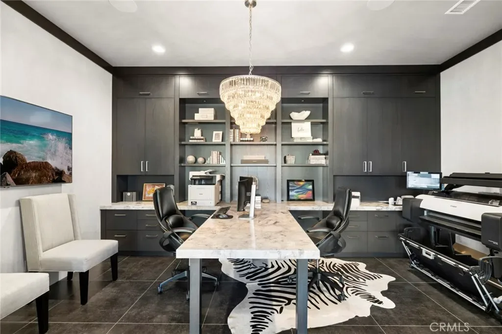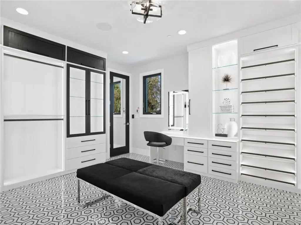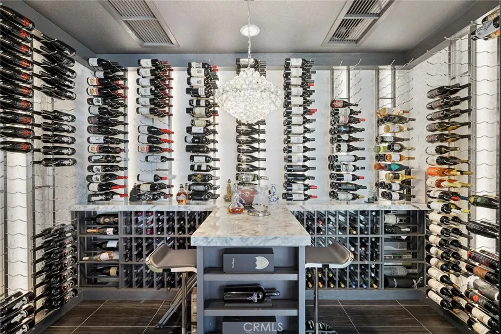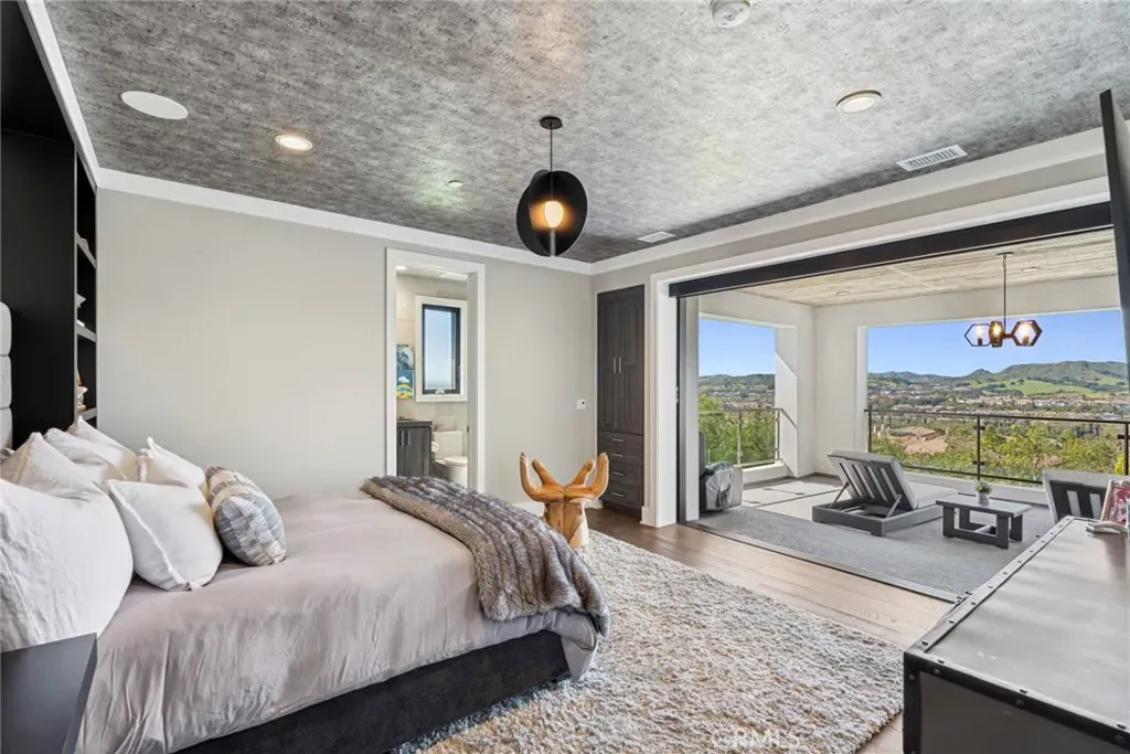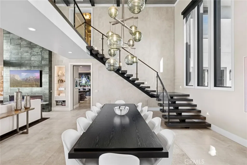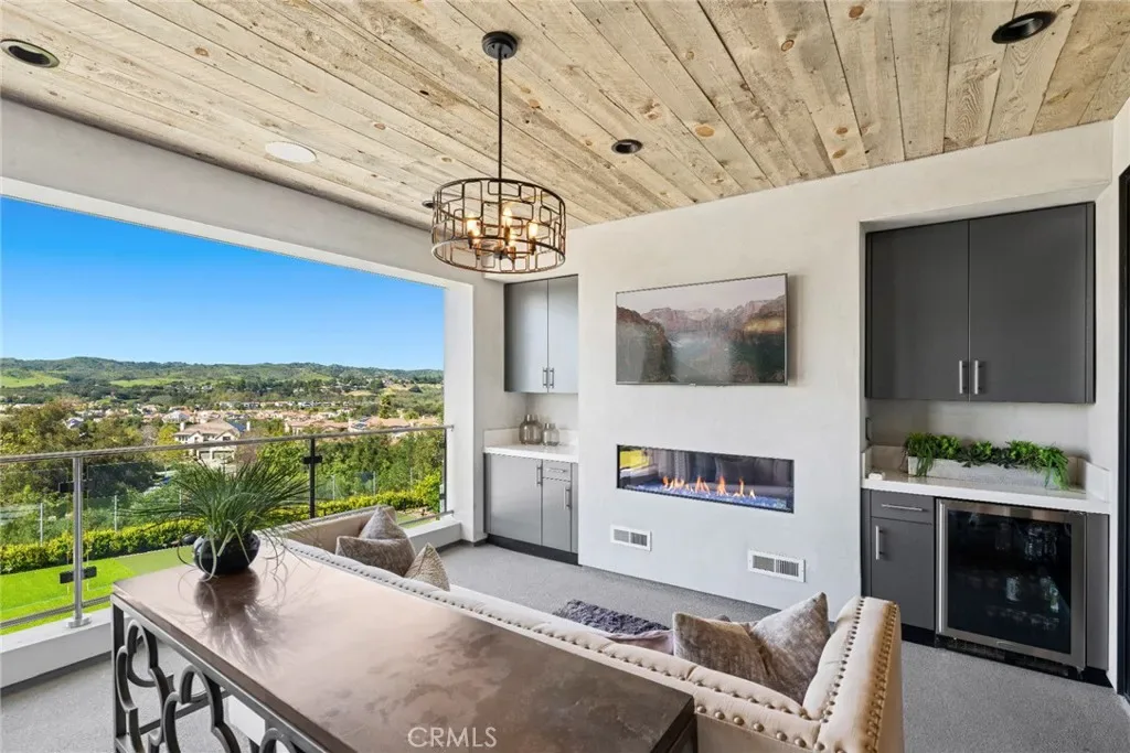 Set on an exceptionally private 1.7-acre corner lot with 180-degree sunset views, this marquee estate stands as one of the most architecturally significant & design-forward residences ever introduced to Coto de Caza. Built just 5 years ago, this modern masterpiece spans over 8,050 sqft of refined interior living & over 3,000 sqft of resort-caliber covered outdoor space. A dramatic open-concept two story great room is wrapped in floor-to-ceiling glass with expansive pocket doors spanning the entire rear of the home. A commanding linear fireplace anchors the family room, while custom wallpaper, statement chandeliers & sculptural sconces adorn every space. Two kitchens with the highest caliber of appliances and two elongated islands provide exceptional versatility for sophisticated entertaining. A dramatic game room features a custom floor-to-ceiling fireplace, restaurant-grade bar that extends directly to the outdoor entertaining areas, 7 tvs placed to capture synchronized viewing or multiple games at once and a temperature-controlled wine room. The primary suite is a private sanctuary, complete with a retreat, fireplace-equipped covered deck overlooking the valley, spa-inspired bathrooms with his-and-her showers, water closets & expansive custom closets. The downstairs guest suite showcases an en-suite bath & separate exterior entrance. Every upstairs bedroom is appointed with its own luxury en-suite, walk in closet, private balcony & sweeping valley views. Outdoors the home transforms into a private oasis anchored by a resort-sized pool & spa with swim-up bar, dining table with cascading water feature, 2 story linear fireplace, 3 fire features, splash pad & multiple covered & open-air entertaining spaces designed for grand-scale events. Private pickleball court further elevates the property into a class of its own. Exterior landscape lighting can be customized to the color selection of your choice. Additional highlights include 3 laundry rooms, Lutron-integrated lighting & automated blinds, whole-home & yard Sonos sound systems, solar power, fully integrated security system & a sleek black photo room, easily adaptable as a pet spa. 4-car garage & parking for up to ten vehicles accommodate collectors and guests with ease, while the corner-lot positioning ensures extraordinary privacy and uninterrupted serenity. This is not simply a residence—it is a flagship statement property, meticulously designed to deliver balance and the ultimate elevated lifestyle.