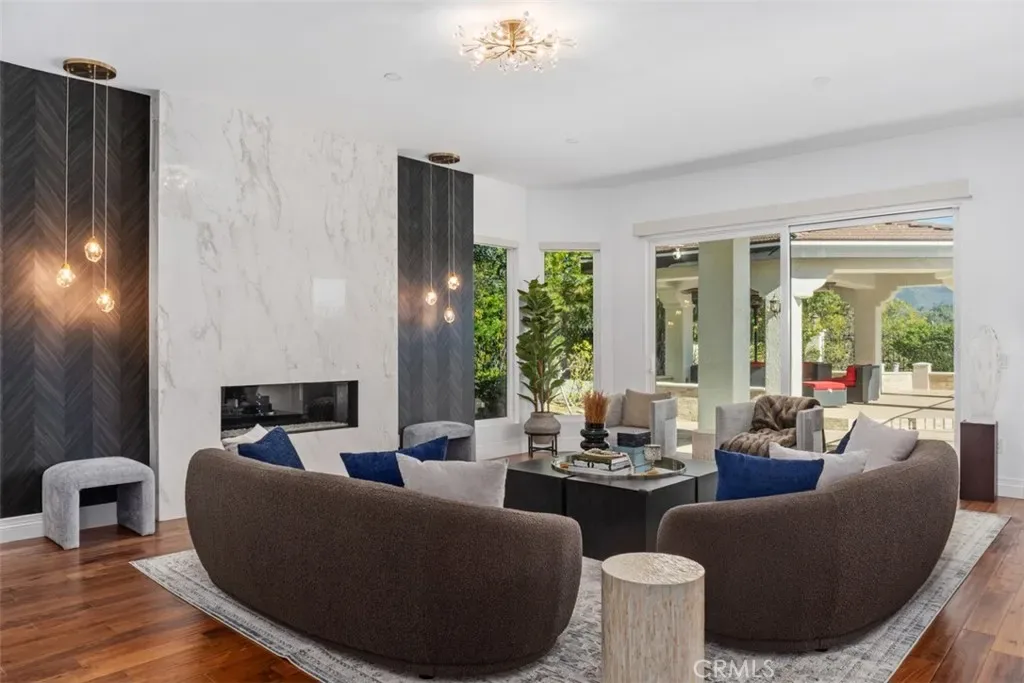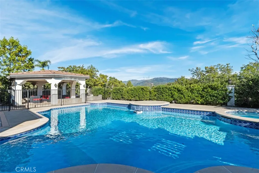 Turn key gated Estate! Within the prestigious Forest section of guard-gated Coto de Caza, this extensively upgraded custom estate offers rare privacy and breathtaking panoramic views. Positioned on approx. 19,000 sq. ft. single-loaded cul-de-sac lot, behind its own private gate, the home is a true sanctuary. Spanning nearly 6,000 sq. ft., the recently remodeled residence features 5 bedrooms (including a main-level suite), 5.5 baths, an office, upstairs gym, and a den. Grand yet inviting, the layout blends formal living and dining with a spacious great room and an all-new gourmet kitchen showcasing dual islands, custom cabinetry, premium appliances, and a fully built-out pantry with sink and dual dishwashers. Full laundry room. Walnut wood staircase with custom wrought iron railing. A truly remarkable home theater with Doby ATMOS 9.1 sound system and reclining Italian leather seating. Gorgeous Carrera Italian marble throughout this exceptional home. The attention to detail is outstanding. Spacious Primary bedroom with incredible walk in closet. Primary bath with steam sauna, dual shower heads and non-steam shower mirror. Dual sinks, separate toilets and custom cabinetry highlight this impressive Carrara tiled bathroom. Warm, rich walnut wood flooring throughout home. Recent upgrades include new HVAC, water filtration, updated piping, windows, doors, and walnut and marble flooring throughout. The quality is remarkable. Residents enjoy championship golf, tennis, pools, fitness center, clubhouse, and equestrian trails, all minutes from premier shopping and dining. 2 tankless water heaters. Oversized doors open to a resort-style backyard with saltwater pool and spa, covered gazebo, multiple seating areas, and an elevated view deck—ideal for year-round enjoyment. A truly remarkable home.