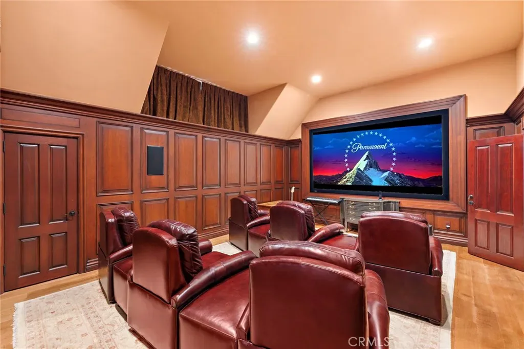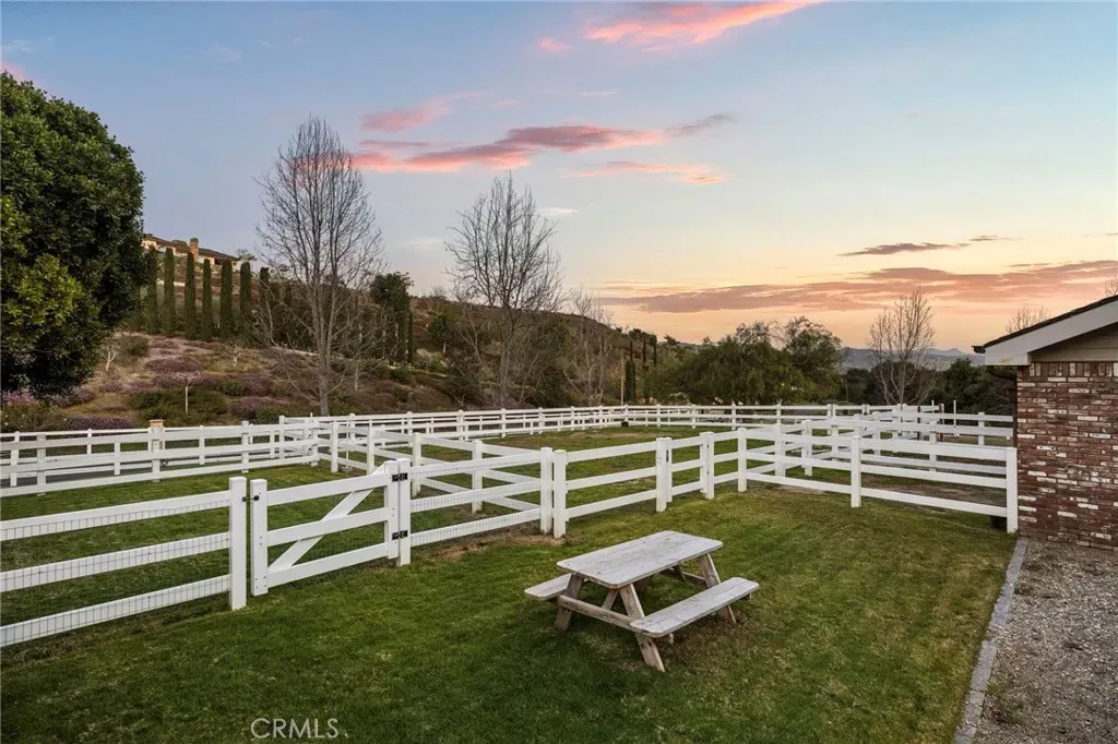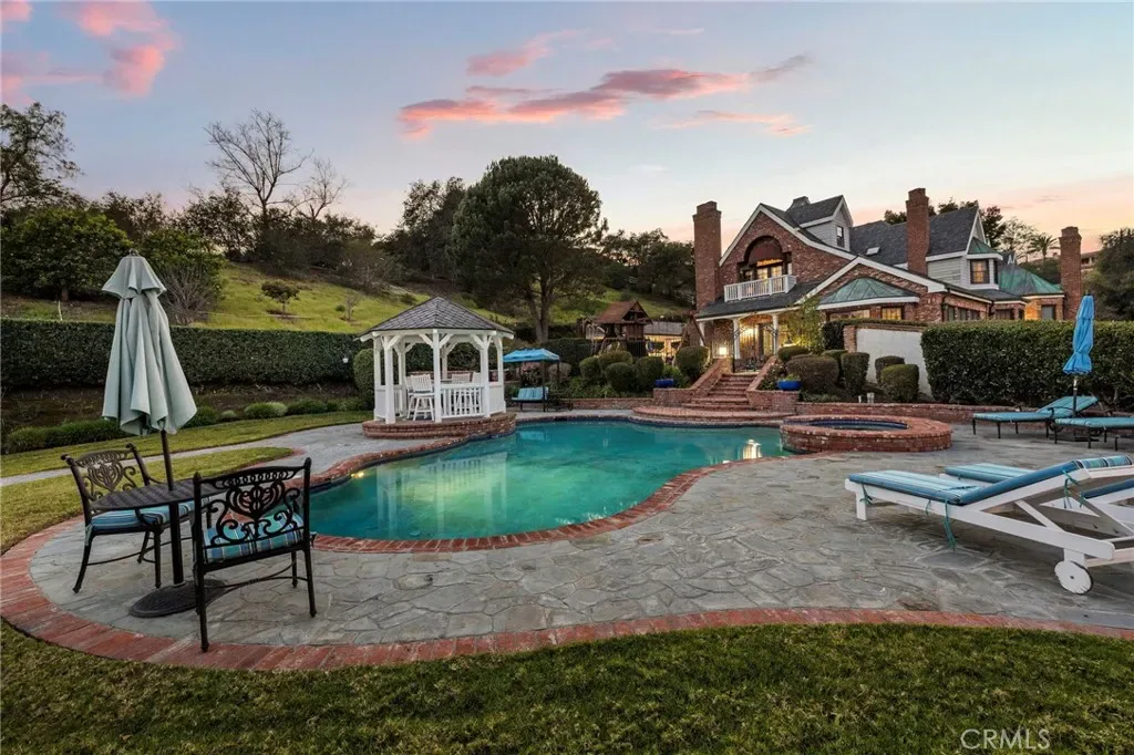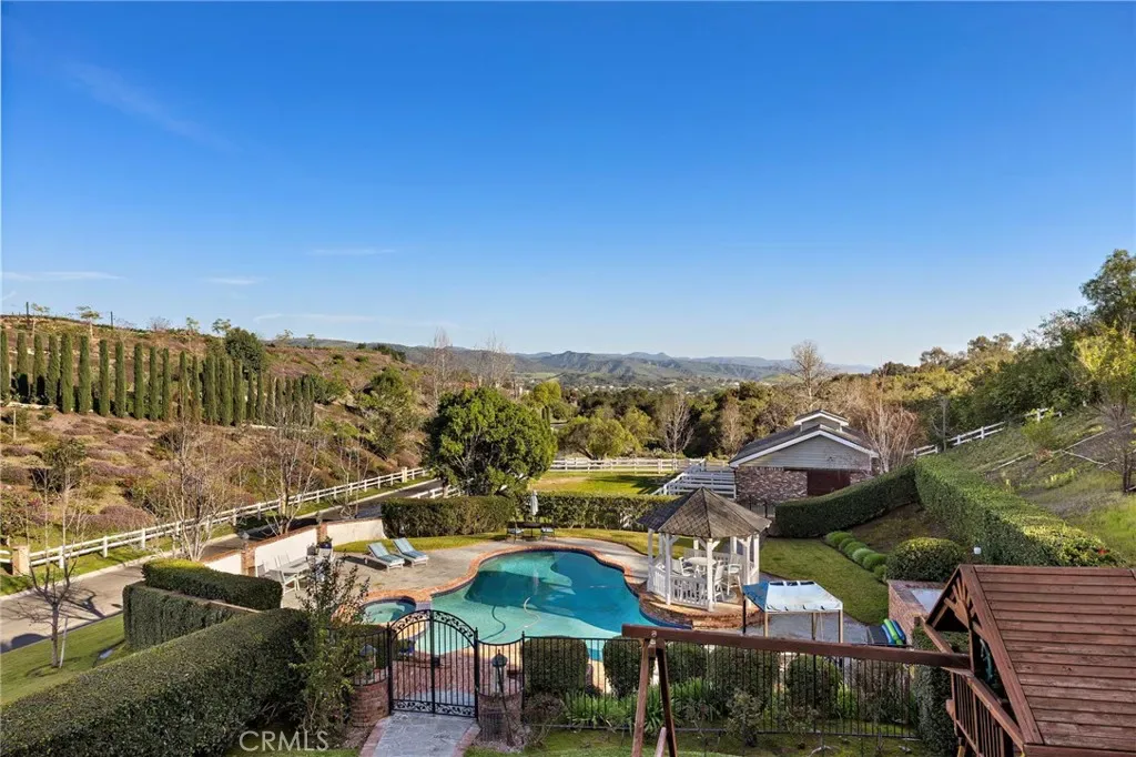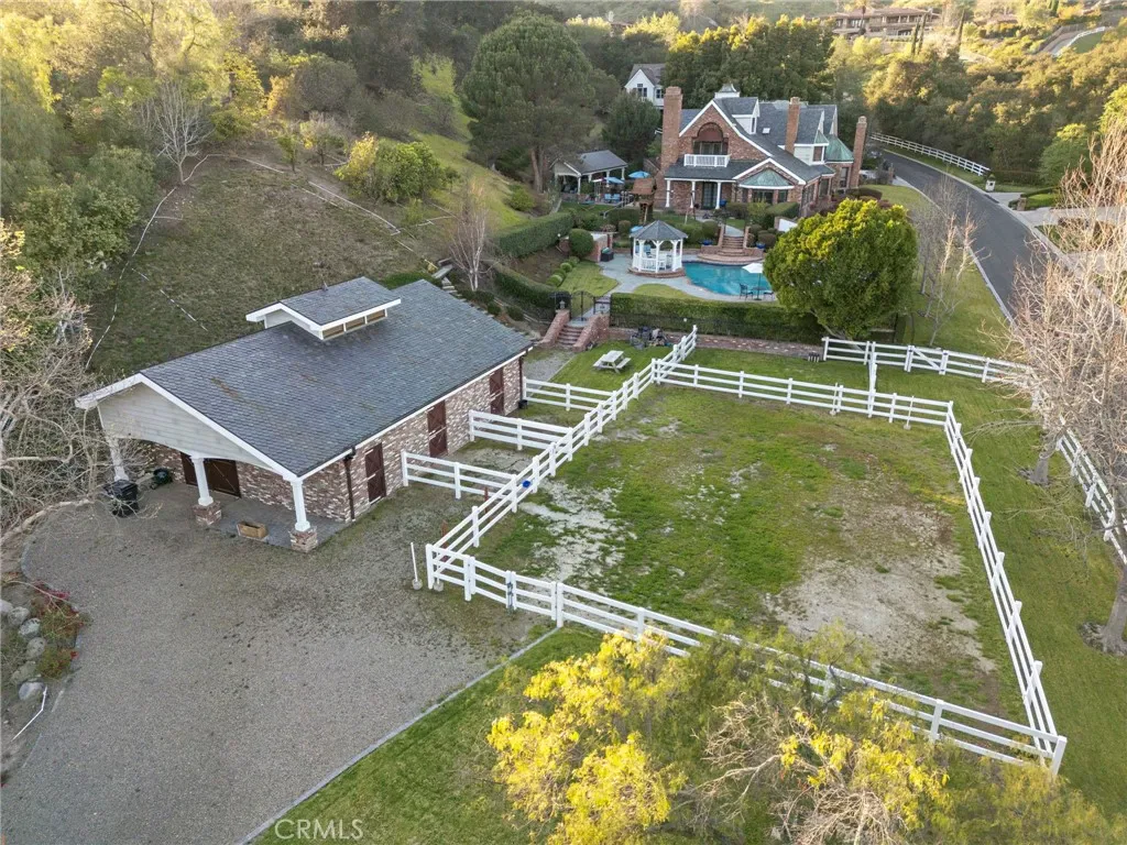 Welcome to a Premier Equestrian Estate spanning nearly Two Acres and showcasing nearly $2 Million in Upgrades in the gated community of Coto de Caza. A stunning brick exterior and private gated driveway leads to the English-inspired residence, where soaring ceilings and a grand crystal chandelier set the tone. The formal living room with a signature Marble Fireplace flows into a grand Great Room featuring Vaulted Wood Ceilings for grand-scale entertaining. At the heart of the home: a true Chef’s kitchen, a Culinary Masterpiece equipped with Three Sub-Zero refrigerators, professional Wolf Appliances, including a Built-In Grille, High-End Pot Filler, and multiple Warming Drawers. The oversized center Island showcases Hand-Carved Wood Details. Enter into the dedicated food preparation area and walk-in pantry. The main level is complete with a private Library, a Bedroom with an Ensuite Bath, and a Laundry Room with Sub-Zero refrigerator. The upper level is a sanctuary of wellness and leisure, highlighted by a Primary Suite with a private balcony that has a spiral staircase with direct access to the grounds, plus breathtaking mountain views from the retreat. The Primary Bathroom serves as a Personal Spa, spanning the long hallway, complete with a Soaking Tub, Glass Enclosed Shower Sauna, Massage Room, and a Boutique-Style Walk-In Closet. On the opposite wing, the estate transforms into an entertainer’s paradise with a Movie Theater, a private Gym with its own balcony and exterior staircase entrance, and a dedicated craft room. The outdoor grounds are equally impressive, featuring Horse Stables and a Corral alongside a pool oasis, spa, and a gazebo. The backyard living space is finished with a stainless steel Wolf BBQ and a brick fireplace, offering a serene backdrop for outdoor dining. Complete with a Four-Car Garage, this one-of-a-kind showpiece property represents the ultimate in California luxury living.