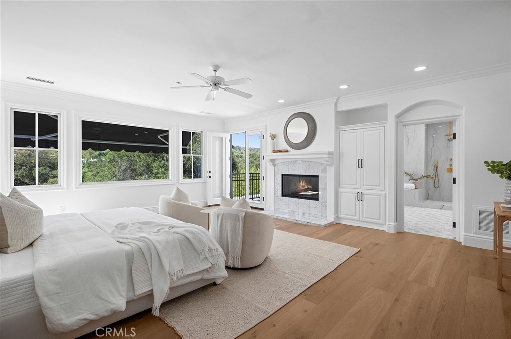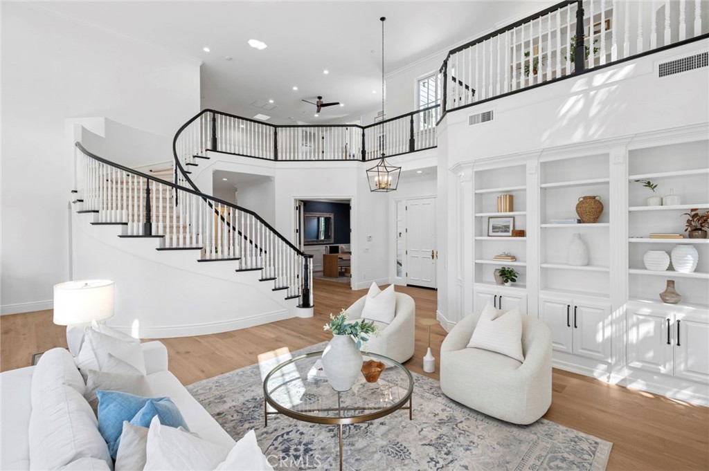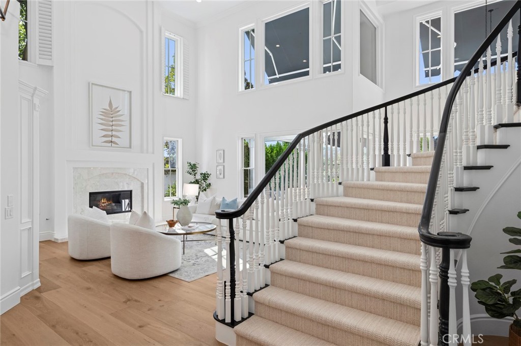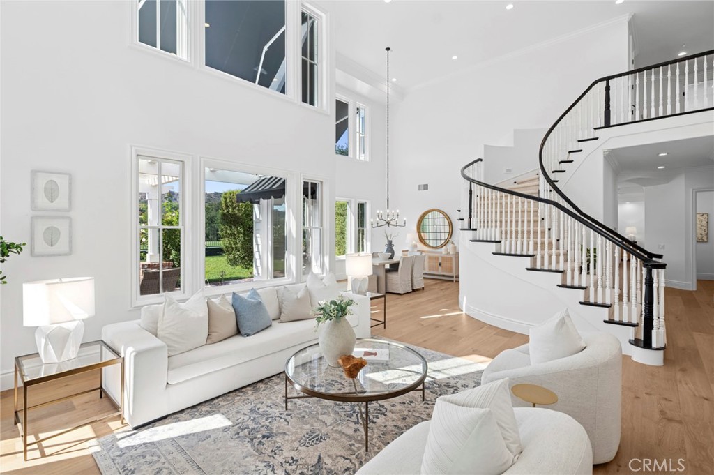 SWEEPING VIEWS And LOCATION! Amazing Sunset and Golf Course Views Overlooking the 18th Fairway of the North course at Coto de Caza. One of only 11 homes on a single loaded cul de sac street with a short walk to the Coto de Caza Golf and Racquet Club. The Simi-custom Home was designed and built by Stonefield Development with a tradition of beautiful and unique architectural design and with exceptional quality features throughout like the solid core 8 ft. wood doors, dual staircases, and walk-out view balcony off the primary bedroom. Three gas-burning fireplaces. The exquisite residence delivers the ultimate in luxury with natural elements in its open light and bright 5000+ sq ft. The residence is graced with a two-story volume ceiling in the Entry, Formal Living, and Dining Rooms. Comforts include 5 spacious bedrooms, 4.5 bathrooms, 4-car garage, Library/Office, and large open upstairs lounge area for the family or office plus A Separate area for reading/ study. Many large Picture windows (9 are new and installed by Anderson). The home has many modern upgraded features, including wide plank wood flooring throughout (except the two staircases), which has beautiful wool carpeting. All new Toto toilets, including a bidet washlet, are in the primary bathroom. Completely remodeled master bath with Newport Brass Fixtures, solid slab stone shower, and counter tops, a free-standing tub for that soothing bath while enjoying the stunning views. The open Kitchen has a large walk-in island with a Viking cook top, two new Viking dishwashers, and a spacious nook with a large picture window to enjoy the views of the golf course and hills. Opening to a great family room with a new floor-to-ceiling custom lime stone fireplace with custom mantel. The French door leads to the partially covered and open patio, a lush backyard with panoramic views. A convenient back staircase leads to the 2nd level, with 4 spacious bedrooms, including the main suite has a wall of windows for the views. a fireplace, and a walk-out balcony. All new Emtec black hardware and new black thresholds throughout, Newer paint inside and out. Epoxy Garage floors and storage cabinetry. All new lighting inside and out. Many electrical outlets were replaced. New Canvas Awnings on 7 windows, updated landscaping. Some roof areas replaced, new rain gutters were installed, and so much more. Must see to appreciate.