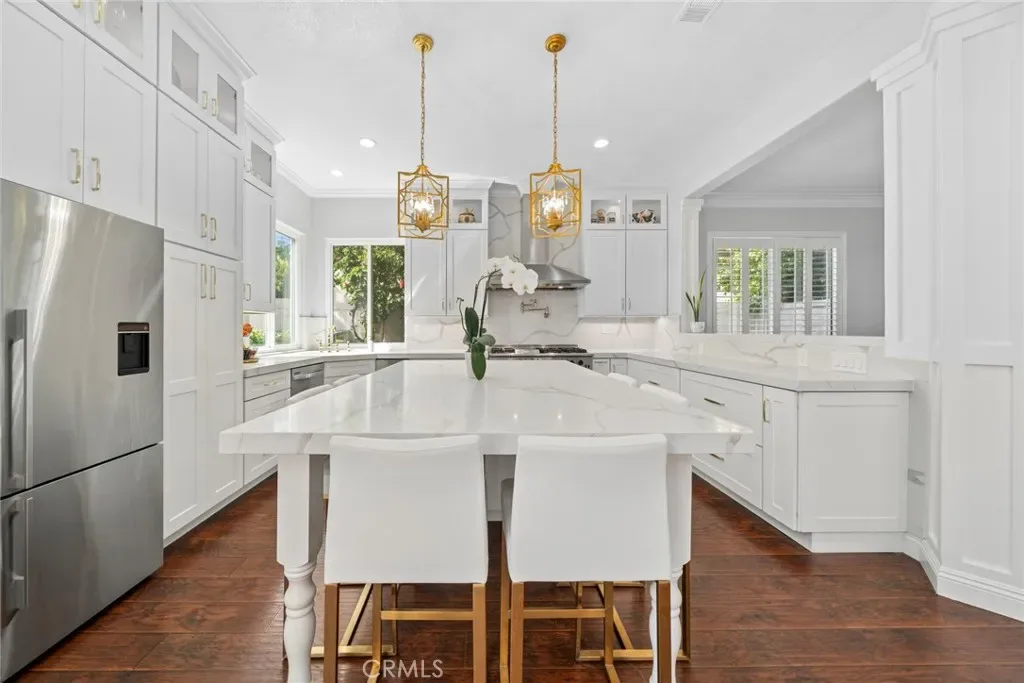 Welcome to 6 Coffeeberry Court, a stunning 6-bedroom home ideally located on a quiet cul-de-sac inside the prestigious gates of Coto de Caza. Showcasing refined upgrades, timeless design, and an exceptional layout, this property offers the perfect balance of luxury, comfort, and modern living. Upon entry, the formal living and dining rooms set the tone for the home’s sophisticated style. The centerpiece of the property is the spectacular, fully remodeled gourmet kitchen—truly one of the most open and highly upgraded kitchens in the area. Thoughtfully designed for both entertaining and everyday living, it features new appliances, premium finishes, abundant cabinetry, expansive counter island, and custom wainscoting- all seamlessly flowing into the main living areas. The open-concept family room impresses with soaring two-story ceilings, expansive windows and doors that flood the space with natural light, rich wood flooring, and a beautiful wainscoting-accented fireplace. The main level includes two bedrooms and remodeled bath, ideal for guests, multi-generational living, or a private office. Upstairs, the luxurious primary suite serves as a peaceful retreat with a fully remodeled spa-inspired bathroom featuring contemporary flooring, custom cabinetry, upgraded fixtures, a stand-alone soaking tub, oversized shower, and a spacious walk-in closet. Three additional bedrooms, a remodeled bathroom, and a convenient upstairs laundry room with quartz countertops and upgraded cabinetry complete the upper level. The private backyard is designed for effortless outdoor living with drought tolerant turf, mature landscaping, custom hardscape, a charming gazebo with bistro lights & fire pit, as well as a BBQ island- creating the perfect space for alfresco dining or relaxing evenings. Additional upgrades include LED recessed lighting, plantation shutters, new patio doors, repiped plumbing, replaced exterior drain lines, new front roof underlayment, garage storage racks, separate walk-in tool closet, replaced water heater and whole house fan. Modern energy features elevate the home even further with Tesla solar panels, two Powerwall batteries, and an EV charger. Experience all that Coto de Caza has to offer including it’s award-winning schools, Golf & Racquet Club, sports park, Coto Pickleball Club, hiking, biking, Equestrian Center and dog park. Don’t miss the rare opportunity to own this exclusive gem, where every element speaks to exceptional taste & high-caliber living.