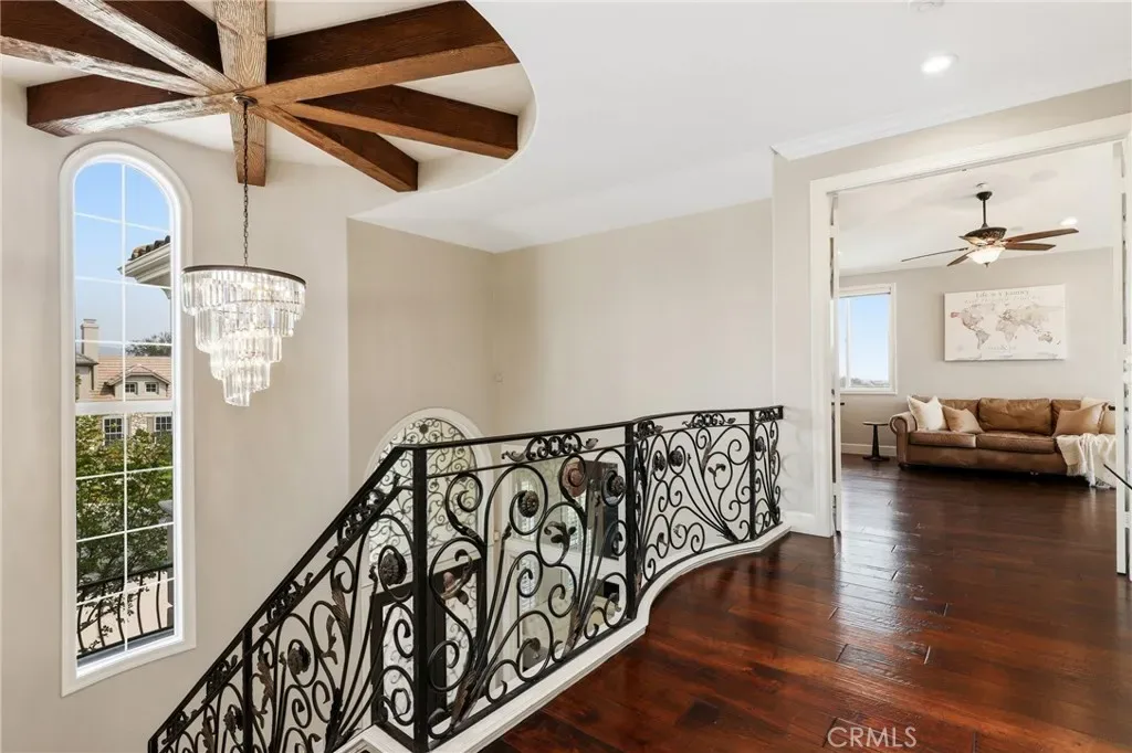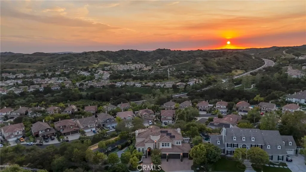 Commanding a premier corner lot within the prestigious Pinnacle enclave of Coto de Caza, 45 Panorama captures sweeping panoramic vistas and unforgettable sunset views, offering a truly exceptional living experience behind the gates. This expansive residence is thoughtfully designed for both grand entertaining and everyday comfort, featuring five bedrooms, four-and-a-half baths, a private office, and an oversized bonus room. From the moment you enter through the double doors, you’re welcomed by soaring ceilings, abundant natural light, and a sense of scale that immediately sets the tone. The heart of the home is a chef’s kitchen designed to impress—complete with dual center islands, generous seating, professional-grade stainless steel appliances, and a sunlit breakfast nook that frames picturesque backyard views. Seamlessly connected, the adjoining family room offers a warm yet sophisticated ambiance with custom built-ins and a striking stone fireplace. Upstairs, the primary suite is a true retreat—offering elevated ceilings, a private sitting area, and a view balcony that showcases the home’s breathtaking surroundings. The spa-inspired bath features a soaking tub, oversized walk-in shower, dual vanities, and refined finishes throughout. Secondary bedrooms are well-appointed, including a Jack-and-Jill layout and an en-suite guest room, while the versatile bonus room provides endless possibilities. Designed for resort-style living, the backyard is an entertainer’s dream. Enjoy a sparkling pool and spa, outdoor kitchen and BBQ island, covered lounge areas, and unique recreational features including a sport court, putting green, and batting cage—all set against a backdrop of expansive views. UPGRADES Include, House is Fully Re-piped with PEX, Fully PAID SOLAR with 3 TESLA Power Walls and dual EV charging plug ins and direct access to the 4 car garage. Residents of Coto de Caza enjoy access to world-class amenities including championship golf, equestrian facilities, scenic trails, and an exclusive club lifestyle, all within one of Orange County’s most coveted guard-gated communities.