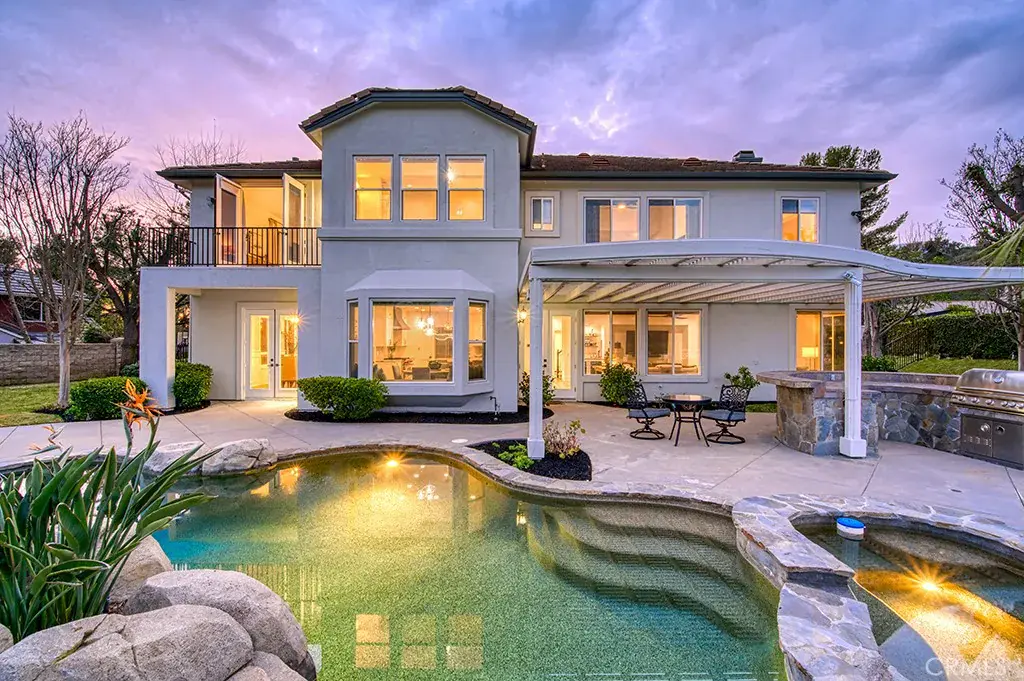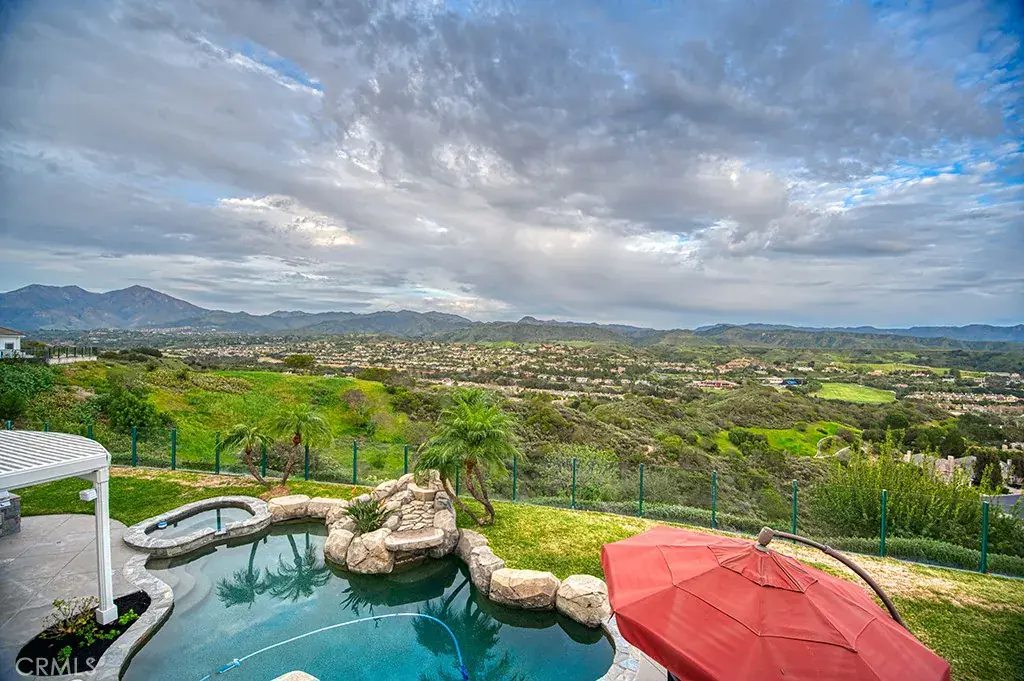 Look no further than this beautifully remodeled estate with extraordinary panoramic views atop the highly desirable street of Panorama in the Pinnacle tract of Coto de Caza! Not only does 6 Panorama offer incredible views that span Saddleback Mountain through Coto de Caza and beyond, this home also presents a completely remodeled interior showcasing high-end design at every turn. From the moment you step inside, you’ll find two-story ceilings that showcase a bright and open floor plan. The main level is thoughtfully designed for both everyday living and elevated entertaining, featuring a formal dining room off the kitchen, an inviting living room with fireplace, a private office, and a beautifully remodeled chef’s kitchen equipped with high-end stainless steel appliances, a beverage fridge, and a walk-in pantry. A convenient downstairs bedroom, full bath, laundry room, and additional half bath provide flexibility for guests or multigenerational living. Upstairs, the luxurious primary suite is a true retreat, highlighted by a stunning remodeled spa-inspired bathroom with dual sink vanities, a walk-in closet, a soaking jetted tub and walk-in shower. A spacious bonus room offers endless possibilities for a media lounge, playroom, or home gym. Three additional spacious secondary bedrooms include a Jack-and-Jill layout and a separate full en-suite, offering comfort and privacy for family and guests alike. The expansive backyard boasts a generous lawn, sparkling pool and spa, built-in BBQ center, and sleek glass fencing that perfectly frames the home’s breathtaking panoramic views. Whether hosting gatherings or enjoying quiet sunsets, you’ll love what this home has to offer. Experience the best of Coto de Caza, where premier living meets award-winning schools, a world-class Golf & Racquet Club, scenic sports parks, and easy access to hiking, biking, and equestrian trails. No Mello roos=low tax rate. Newer top of the line HVAC Systems and repiped home.