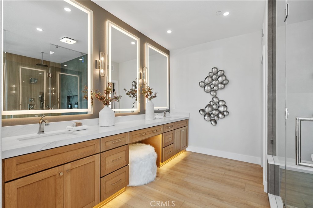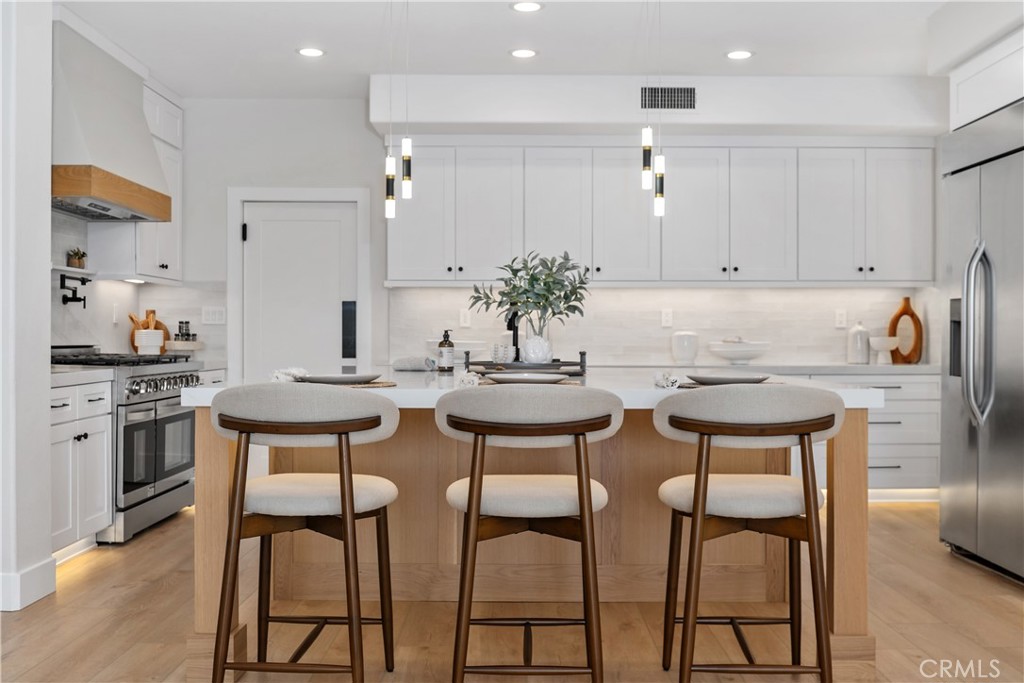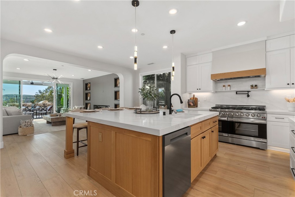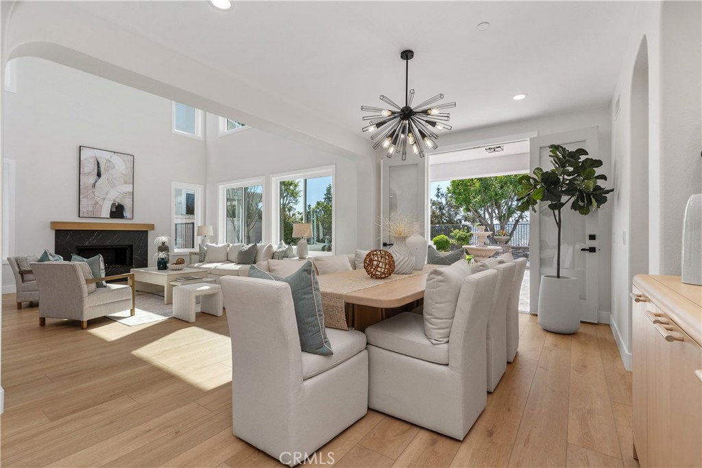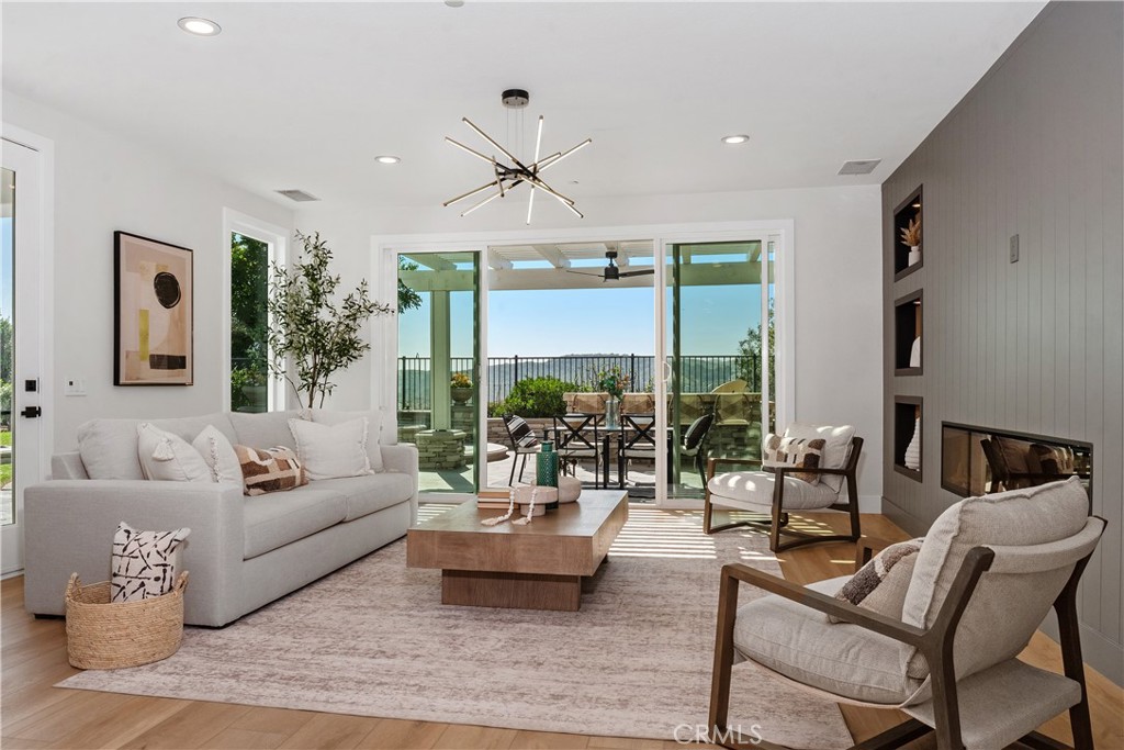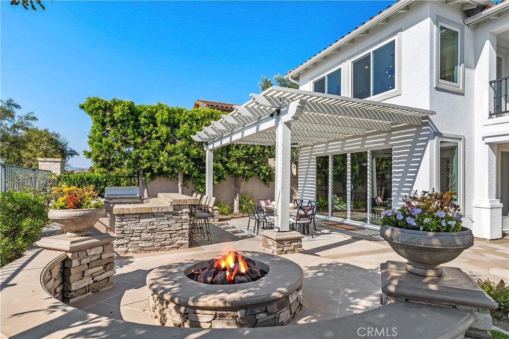 Set on a peaceful cul-de-sac street in the Terra Vida tract of Coto de Caza, this highly upgraded residence pairs expansive southwestern views with luxurious amenities inside and out. From the manicured front courtyard to the sun-drenched living spaces within, every detail has been carefully considered. The interior centers on a soaring two-story living room and fireplace with dramatic proportions, flowing gracefully into the formal dining space and a private home office. The family room features a second fireplace and extensive built-ins, with sweeping views and access to the patio, while the chef’s kitchen showcases a stunning remodel with all-new cabinetry, expanded pantry, and a custom island. Enjoy a brand new 48” professional-grade stove with hood and pot-filler, plus a built-in automatic microwave drawer and new dishwasher. A secondary prep kitchen with its own Viking cooktop, refrigerator, vent hood, and sink allows for effortless entertaining on any scale. On the main level, one bedroom and full bathroom create a versatile suite for guests or multi-generational living. Upstairs, the primary suite is a retreat unto itself, featuring a sitting room with fireplace, a balcony capturing breathtaking views, and two walk-in closets. The primary bathroom has been remodeled to spa-quality with a freestanding soaking tub, floor-to-ceiling glass shower, and Delta fixtures with temperature and volume control. Two additional bedrooms share a beautifully remodeled bathroom on this level. Outside, the property is designed for entertaining and everyday relaxation. Enjoy a grassy lawn and extensive hardscape with a built-in BBQ, pergola dining area, and a fire pit, all perfectly positioned to take in the stunning views. Additional updates include COREtec Premium Grande Makkah Oak vinyl plank flooring, premium Dunn-Edwards paint inside and out, all-new energy-efficient windows, LED fixtures, whole-house repipe, new interior doors, custom staircase, new garage flooring, and a refreshed laundry room. Three-car garage with built-in cabinets and overhead storage. Guard-gated Coto de Caza offers horse trails, clubhouse, gym, pool, spa, and BBQ facilities, plus tennis and two championship golf courses at the Golf & Racquet Club, all within minutes of diverse shopping and dining. This is a home where the views, finishes, and lifestyle come together in a way that simply has to be experienced in person.