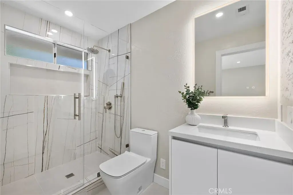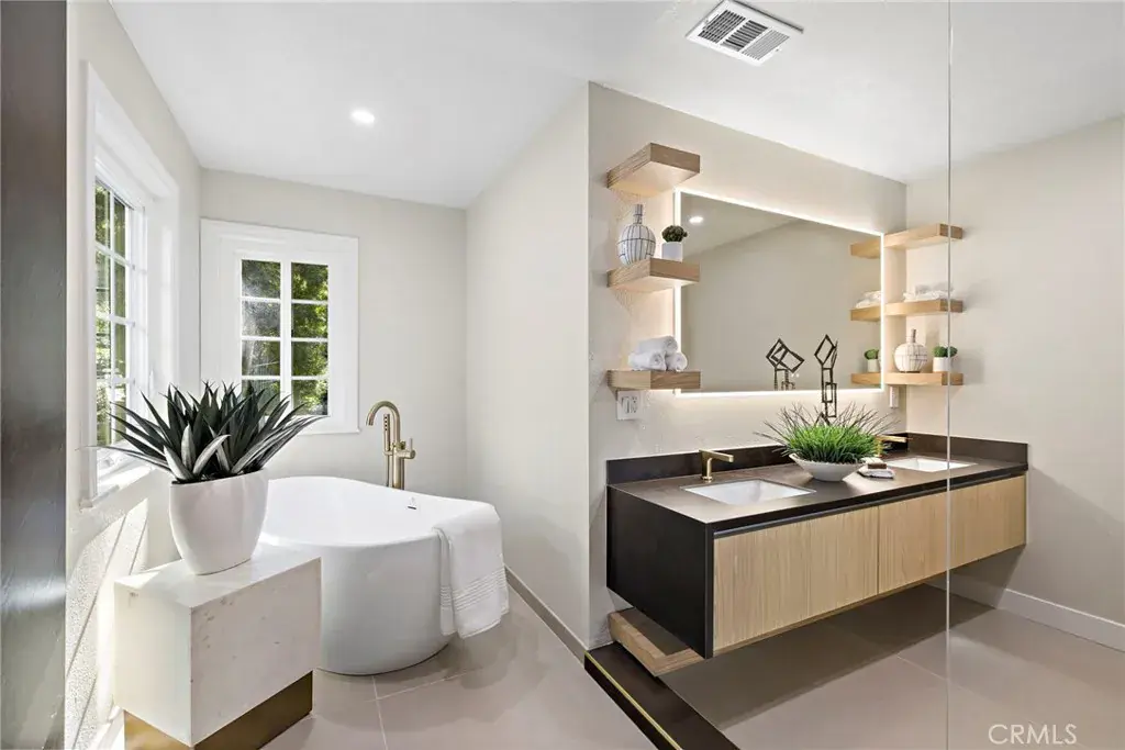 Welcome to this exquisitely renovated 4-bedroom, 4.5-bath residence in the coveted Village of Coto de Caza. This masterfully reimagined home showcases contemporary luxury living while maintaining the warmth and charm that defines this historic community. The home’s striking curb appeal features new landscaping with professional lighting, a designer driveway with modern concrete panels, and thoughtfully placed ambient lighting that creates an enchanting approach. An expertly terraced backyard with custom stone retaining walls, hanging egg chairs, and strategic lighting creates multiple outdoor living spaces perfect for both relaxation and entertaining. Step inside to discover a complete transformation where no detail has been overlooked. The gourmet kitchen stands as the heart of the home, boasting custom floor-to-ceiling modern cabinetry in light neutral tones, premium stone countertops, and a sleek center island with waterfall edges. High-end stainless steel appliances, including a Café built-in refrigerator, and designer pendant lighting complete this culinary haven, while open sight lines seamlessly connect to the dining and living areas. The primary suite offers a private sanctuary with vaulted ceilings and a private balcony. Its spa-inspired bathroom features a luxurious freestanding soaking tub, oversized glass shower, floating double vanity with designer lighting, and custom wood shelving with modern fixtures. The thoughtfully designed walk-in closets offer abundant storage with custom organization systems. No expense was spared in selecting premium finishes, from sophisticated brushed gold plumbing fixtures to high-end hardware and artfully curated lighting throughout. The attention to detail continues with new roof and windows, engineered hardwood flooring, custom millwork, and architectural details. Expansive French doors flood the interior with natural light while providing easy access to the outdoor living spaces. Located just minutes from the historic Old Coto Country Club and nestled in the picturesque rolling hills of Coto de Caza, this turnkey residence offers the perfect blend of luxury living and community charm. With designer touches and premium finishes too numerous to list, this stunning property is truly a must-see to appreciate the level of craftsmanship throughout. This is more than just a home; it’s an opportunity to be part of a community where lasting memories are made and traditions are cherished.