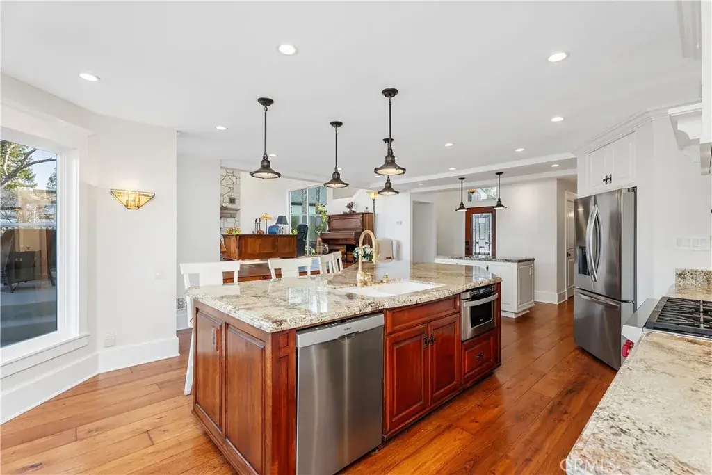 Reimagined by an award-winning designer and rebuilt by a 5th generation contractor. Located in the sought-after Village of Coto De Caza, this rare custom residence stands apart from typical remodels or investor flips. Taken to the studs and meticulously rebuilt, it offers craftsmanship, structural integrity, and thoughtful design rarely seen in today’s market. Every detail was considered. This is not a cosmetic update, but a comprehensive reconstruction designed for long-term performance and elevated living. This exceptional three-story home showcases custom moldings, refined finishes, and top-of-the-line upgrades throughout. Features include high-end appliances, concrete siding, Thermopane windows, modern HVAC, upgraded electrical, new plumbing with relined sewer line, tankless water heater, whole-house filtration, softener, and recirculating hot water system. With four bedrooms and three-and-a-half baths, the layout is functional and elegant. The upper level offers a private bedroom with built-in Murphy bed, added ensuite bath and laundry, plus a tranquil primary retreat with mountain views, balcony, electric fireplace, dual-head shower, clawfoot tub, and spacious walk-in closet. The entry level is ideal for entertaining, centered around a chef’s kitchen with walk-in pantry, two Jenn-Air ovens, 6-burner Wolf range, Bosch dishwasher, drawer microwave, bake center, and 31-cu-ft refrigerator. Adjacent spaces include a light-filled living room with stone fireplace and Craftsman mantel, sliding doors, dining room with beverage center, and family room opening to a private courtyard. Outdoor living includes a front Trex deck courtyard and expansive rear deck with mountain views. The lower-level features two bedrooms, a den with stone fireplace, remodeled laundry room, and three-quarter bath. Sliding doors open to the yard, greenbelt, and nearby trails, blending indoor and outdoor living. This redesigned home offers designer quality, modern infrastructure, and a serene setting — an exceptional opportunity in a truly special location. Experience the Coto de Caza Country Club lifestyle.