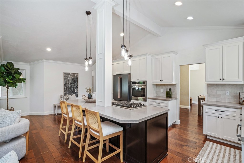 The chef’s kitchen opens seamlessly to the living room, creating an ideal space for entertaining and everyday living. Just off the living area, a beautiful patio invites you outdoors to enjoy the freshly landscaped backyard—perfect for relaxing, dining, or hosting guests.