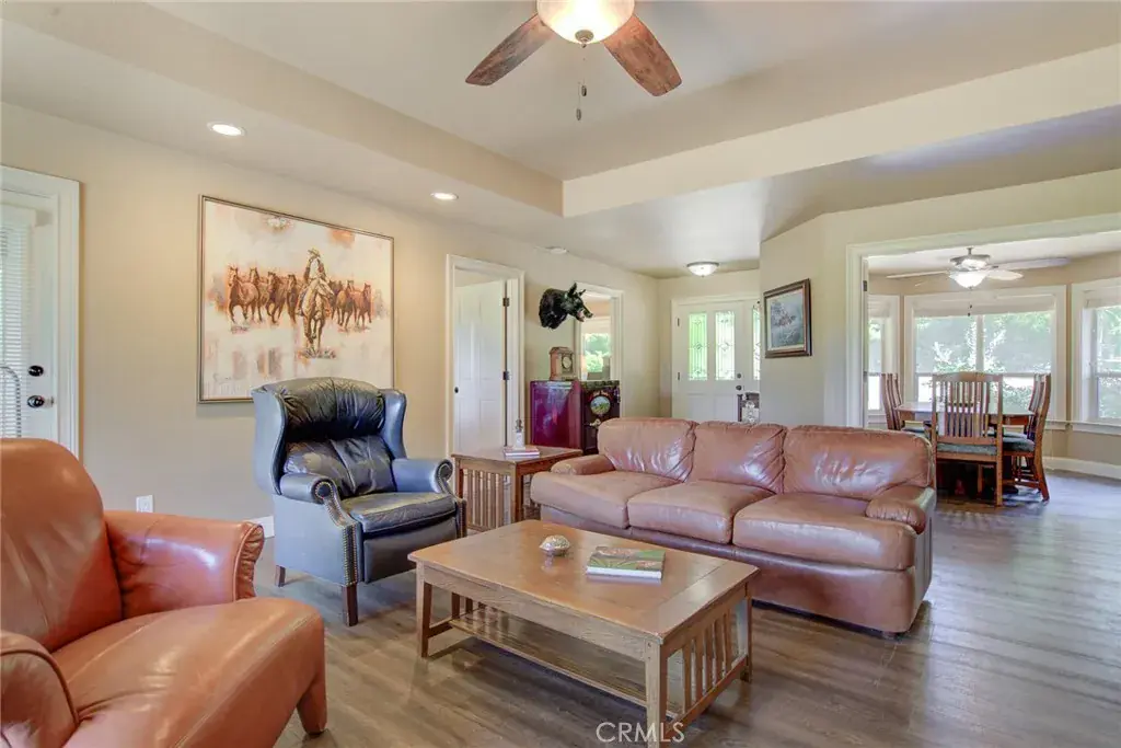 130 +/- acres on the south fork of Cottonwood Creek south of Redding, CA. Located at the end of a paved county road, the ranch offers privacy, views and lots of wildlife. In the center of the property is a comfortable 1,728 square foot ranch style home with 3-bedroom, 2-bathroom. The kitchen opens up to a family room lined with windows providing natural light and views of the gunite pebble tec pool, exterior patios and attractive landscaping. Earlier this year, a new composition roof was installed on the home and detached 2-car garage (32’ deep), as well as a fresh coat of exterior paint. The home’s central HVAC and woodstove is also fitted with a 13-kW propane backup generator. Between the Home and the Red Barn-Shop is an RV site complete with power, septic and second domestic water well. About 75 acres of fertile farmland previously planted to irrigated pasture years ago is now planted to walnuts irrigated using (2) deep wells with electric turbine motors. The balance of the ranch has over 4,000’ of Creek frontage with “native” riparian habitat. There is also a small reservoir which can be filled by surface water runoff or using irrigation wells. Additionally, there is an area that has been irrigated using “big gun” sprinklers previously planted as food plots to attract wildlife, like blacktail deer, pigs, dove, turkey or quail. Due to the nature of sale, farm machinery and furniture may be available by separate agreement.