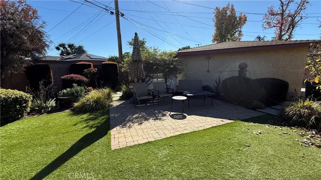 Rare gem – This 3 bedroom, 1.5 bath home is available furnished and ready to move in! You will love the curb appeal as soon as you see it! Front entry leads to kitchen with upgraded cabinets, granite countertops, custom panel on fridge to match the cabinets, and recessed lighting. Comes with dishwasher, full set of plates and cooking pans. Attached laundry room and half bath off the kitchen includes stackable washer & dryer. Three bedrooms are on the other side of the entry way all with original hardwood flooring. Each has a bed and storage available. The 3rd bedroom can be used as an office with built in desk. Hall bath is updated and has tub and shower. Big Living room/dining room has the original hardwood flooring as well and a nice dining set and curio cabinet. Fireplace for those cold nights. Follow through to the extra large family room in back. The room has a huge set of closets for storage, couch, a few tables and an entertainment cabinet with tv. The well manicured backyard has a covered patio and manicured back yard with patio seating, fountain & privacy from the trees. the 2 car garage is at the end of a long driveway with several parking spots. Garage has lots of storage cabinets & automatic opener.