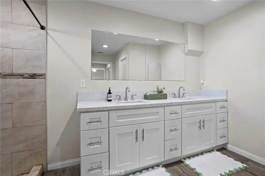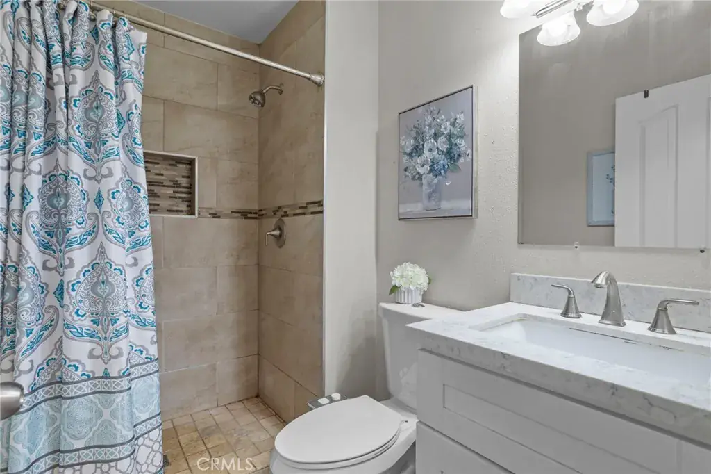 The kitchen anchors the home with clean finishes, generous counter space, and a functional layout that opens seamlessly to the family room with direct access to the backyard, perfect for indoor-outdoor living. A highly desirable downstairs bedroom with a full bathroom provides excellent flexibility for multigenerational living, extended guests, or a private home office. Upstairs, well-proportioned bedrooms are filled with natural light, including a spacious primary retreat featuring a beautifully updated en-suite bathroom with dual sinks and a walk-in closet, offering a calm and comfortable space to unwind. Mountain views from the upper level add a sense of privacy and retreat.