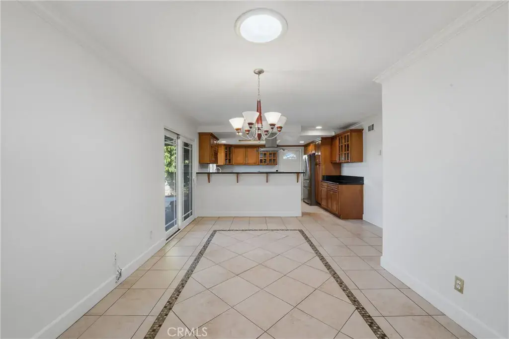The dining area opens to a patio through sliding glass doors, perfect for outdoor dining or relaxing in the yard. Both bathrooms are fully tiled, including the primary shower, offering a clean and timeless look.