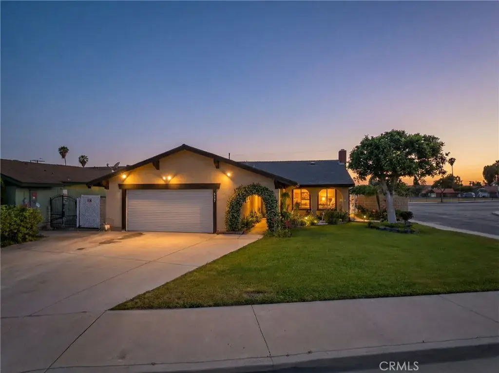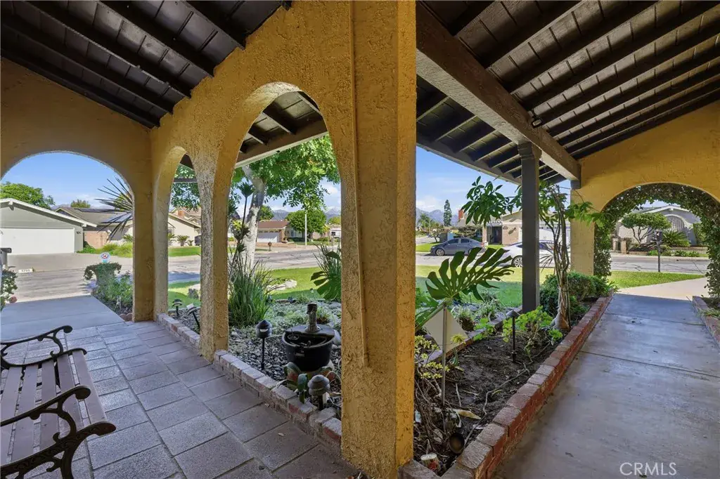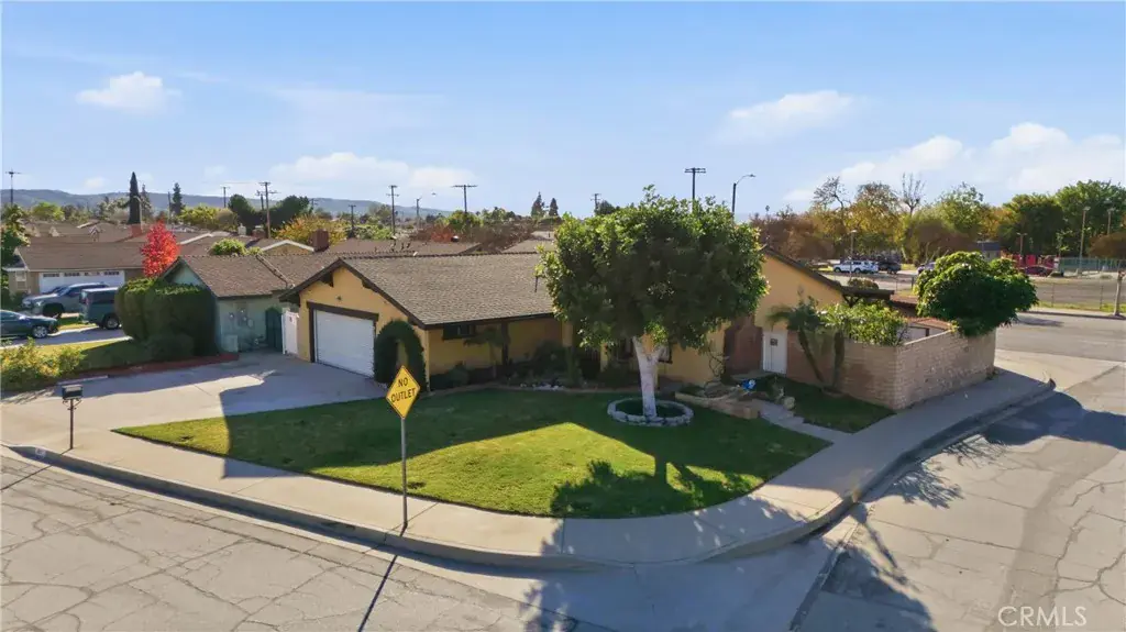 Welcome to this charming single-story Spanish Ranch-style home situated on a desirable corner lot, offering four bedrooms, two baths, classic curb appeal, and a welcoming arched entry framed by a fully landscaped yard, concrete pathway, covered front porch, and tranquil koi pond feature.