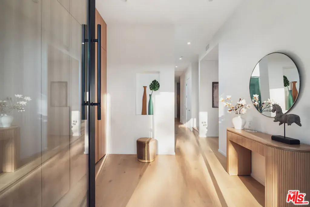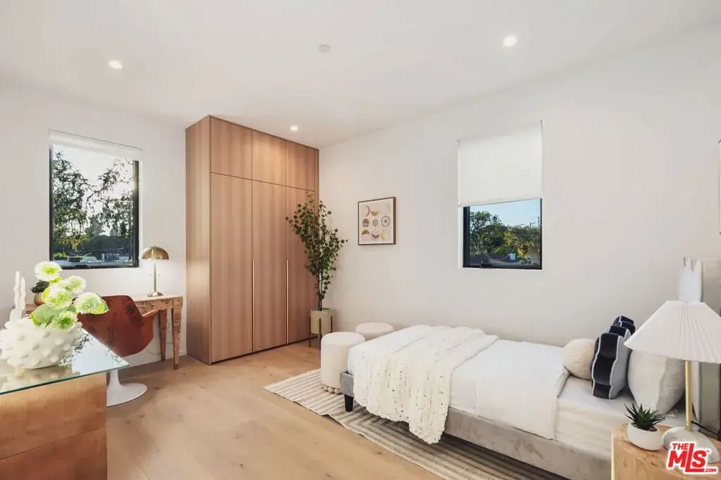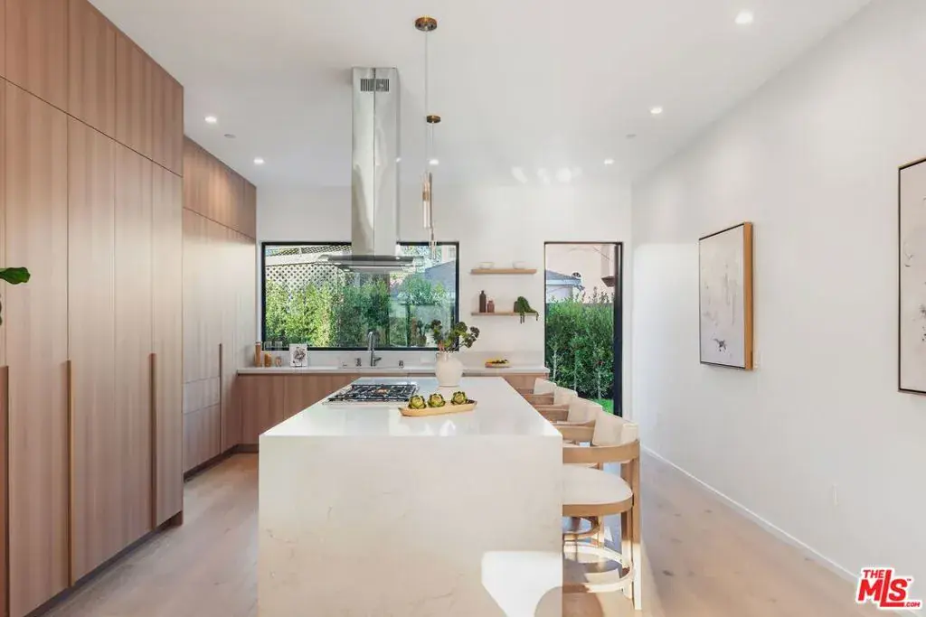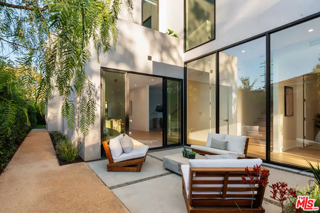 Located in the heart of Culver City on a quiet, tree-lined street, this organic modern architectural compound is newly built and ready for the most discerning buyer. Spanning 4 bedrooms and 4.5 bathrooms across approximately 3,600 square feet of living space, this home is a true turnkey residence. Upon entry, a welcoming foyer opens to a spacious living room filled with natural light and large glass sliding doors that extend the living space to a quiet, hedged side yard. A central courtyard gracefully separates the living room from the kitchen and dining area, while also serving as an ideal setting for indoor-outdoor entertaining. Sliding glass doors from both sides of the courtyard connect each living space seamlessly. The kitchen and dining areas are open-concept, offering additional space for casual seating and relaxing. The kitchen features a large waterfall quartz island, stainless steel Thermador appliances, floor-to-ceiling custom cabinetry, cabinet-paneled refrigerator and freezer, countertop seating, and direct access to the yard. A powder room is conveniently located on the main level, perfect for guests. This floor also includes a guest bedroom with an ensuite full bathroom. Upstairs are three bedrooms, three bathrooms, and a laundry room, along with access to a rooftop deck through the main hallway. The primary suite is a true retreat, sun-filled, serene, and surrounded by treetop views. The primary bathroom spares no expense, showcasing a dual floating vanity, a freestanding soaking tub, and an oversized frameless glass shower. A large walk-in closet with custom built-ins and LED lighting completes the suite. Two additional bedrooms, each with their own ensuite bathrooms, are finished with the same high-end materials found throughout the home including Toto toilets. The private, secure backyard is framed by hedges and features pavers for alfresco dining and the large flat grassy area is perfect for various outdoor activities. 4160 Keystone Avenue is ideally located just minutes from Carlson School and downtown Culver City’s shops, restaurants, and boutiques, as well as major entertainment hubs including Fox Entertainment and Sony Pictures. Don’t miss the opportunity to live in this well-designed architectural gem in one of Culver City’s most coveted pockets.
