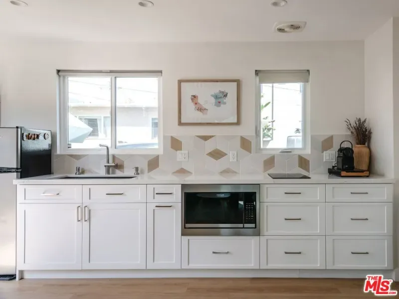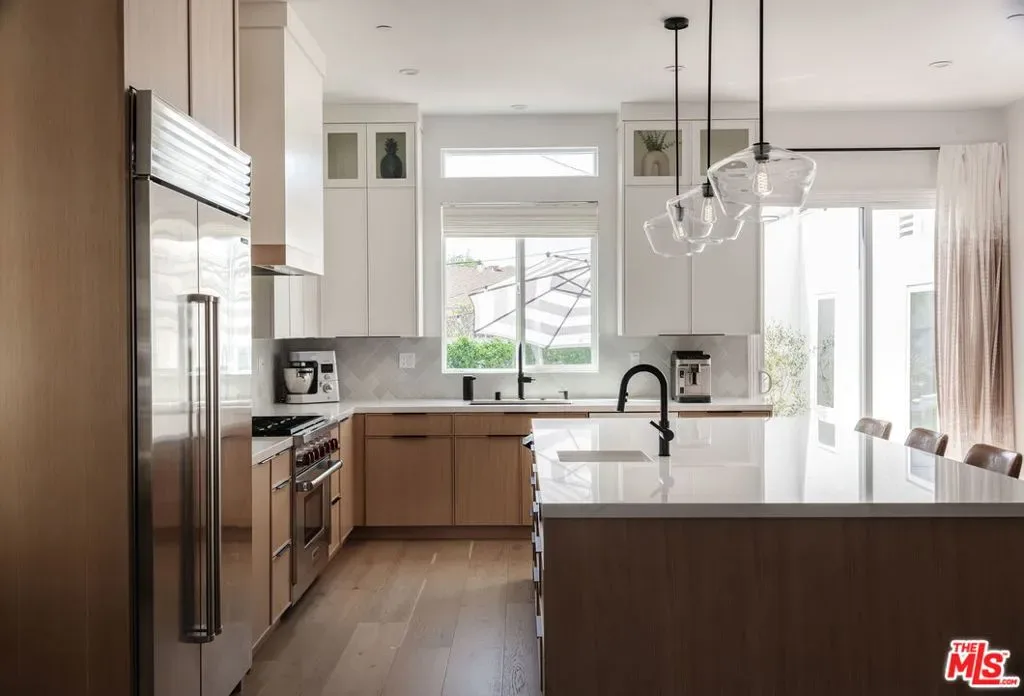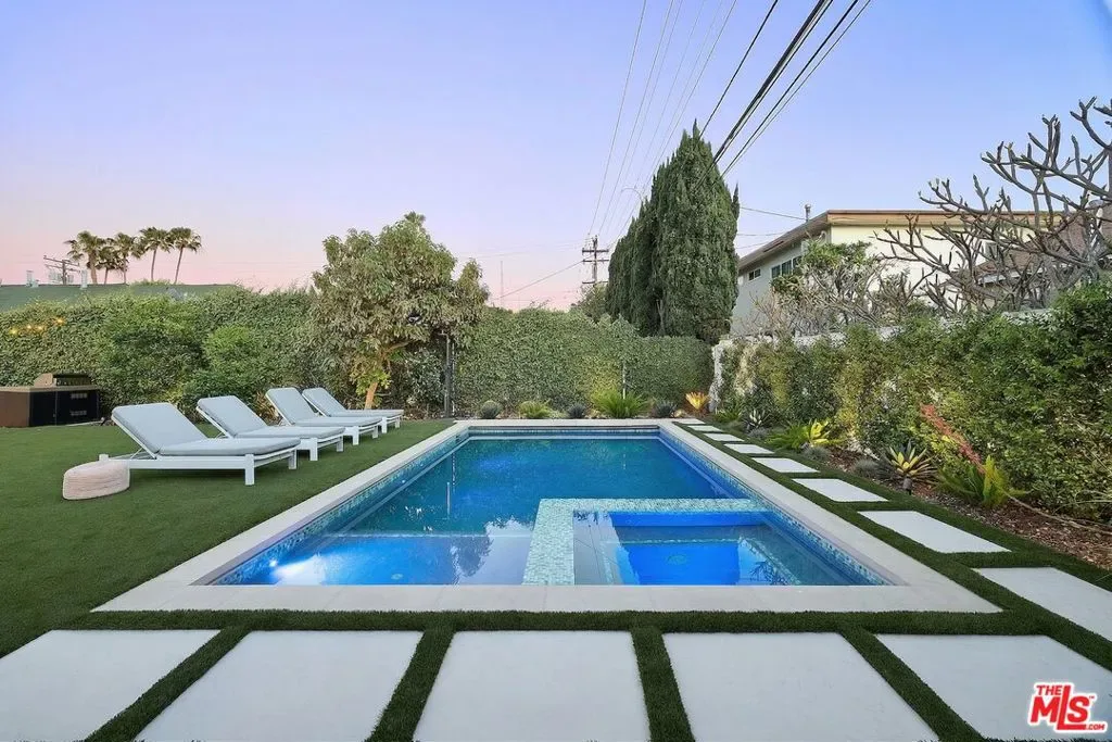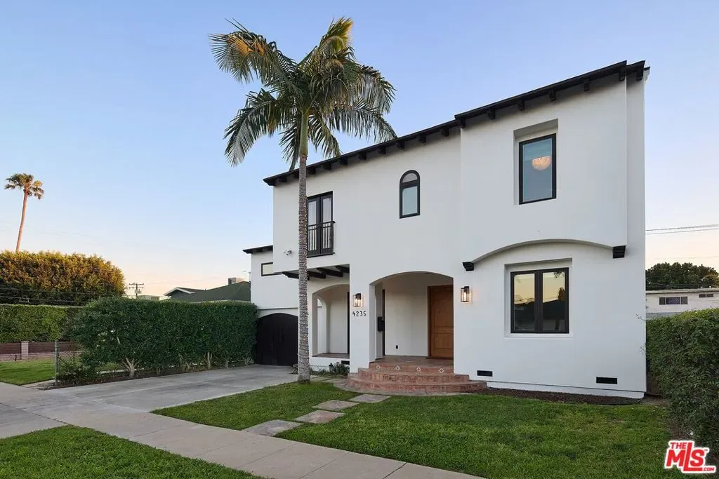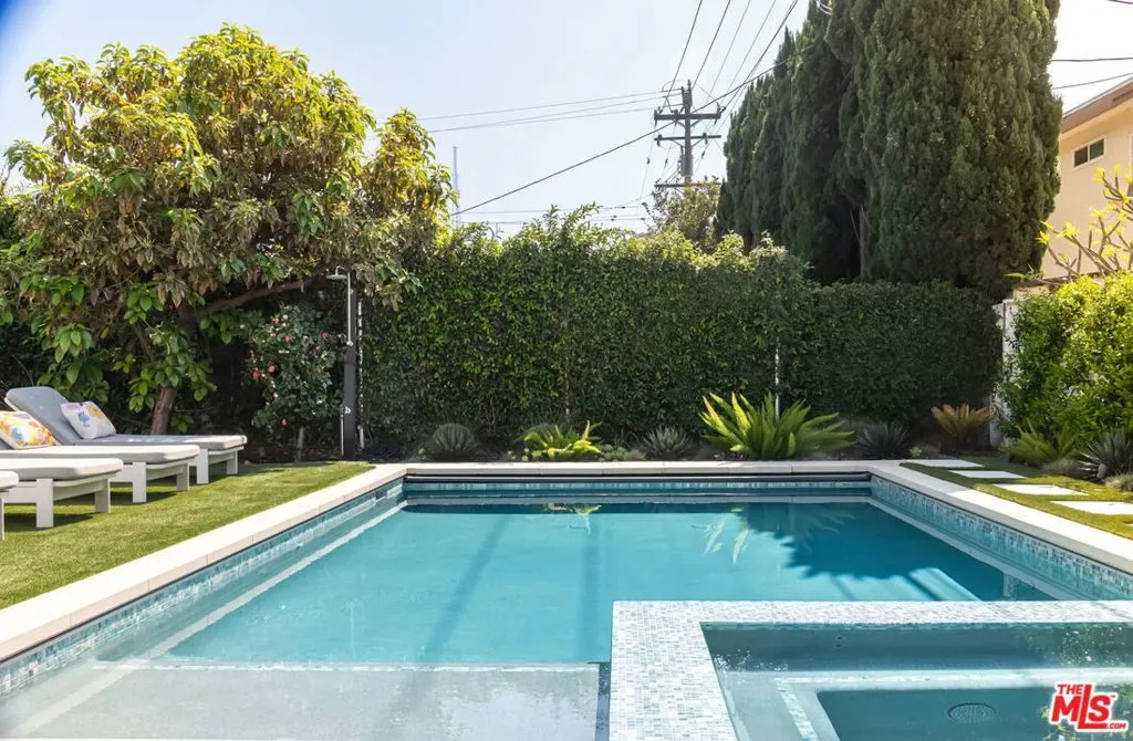 Beautifully reimagined in 2024 and set on one of Culver City’s most desirable streets, this contemporary Mediterranean residence offers a two-level, four-bedroom, two-and-a-half-bath main home, complemented by a detached one-bedroom, one-bath guest house with its own private street entrance, as well as a resort-style backyard with a heated pool and spa. Designed for seamless indoor-outdoor California living, the backyard is an entertainer’s retreat – featuring a dining deck, fire pit lounge, built-in BBQ, and a pool and spa with Baja shelf, electric pool cover, and advanced salt, ozone, and UV filtration. The main home showcases an open-concept layout with soaring ceilings, white oak flooring, and a wood-and-gas fireplace. The kitchen is both refined and functional, with floor-to-ceiling cabinetry, Wolf and Sub-Zero appliances, a walk-in pantry, and an oversized island that flows effortlessly into the dining area. Sliding glass doors open directly to the backyard, creating a true indoor-outdoor experience. The first floor also includes a powder room, a flexible bedroom or office, and a game room with its own private staircase. Upstairs, you’ll find two well-appointed bedrooms with reach-in closets, a dual-sink full bath, and a spacious primary suite featuring a walk-in closet and a spa-inspired bathroom with a soaking tub, oversized shower, and separate water closet. A laundry room with built-in cabinetry completes the upper level. The detached guest house offers a living area with kitchenette, a bedroom with a built-in desk, a full bath, and two mini-split systems. With its private street entrance and direct backyard access, it’s ideal for rental income, guests, or a dedicated workspace. Located just moments from Culver City’s vibrant restaurant row and The Culver Steps, this home delivers elevated living in one of Los Angeles’ most sought-after neighborhoods.
