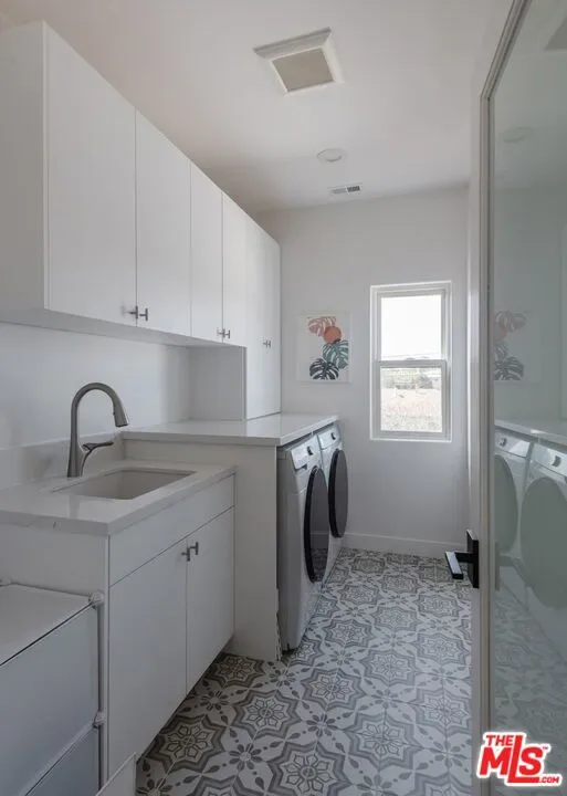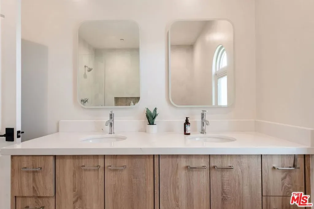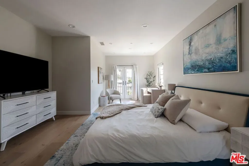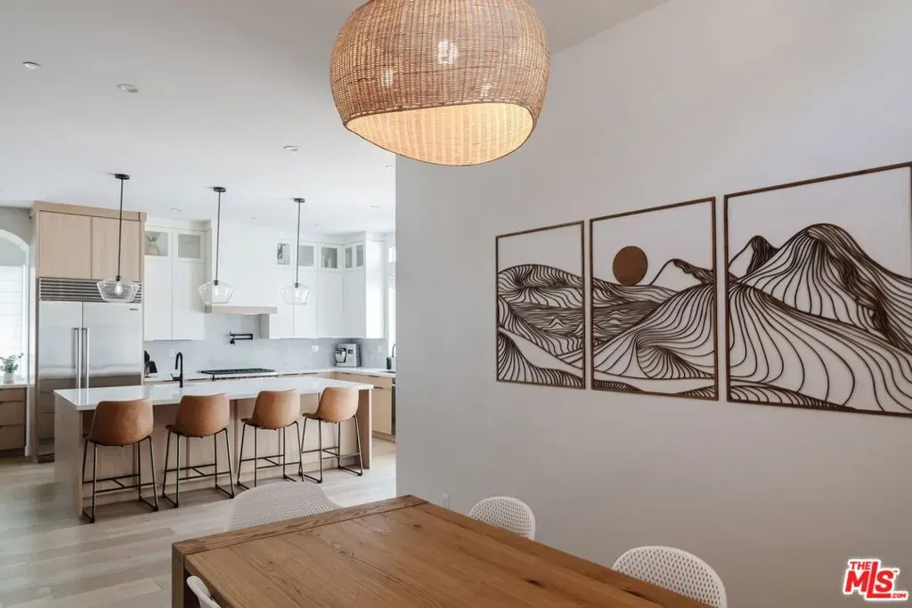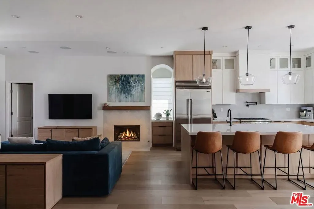 Beautifully reimagined in 2024 and set on one of Culver City’s most desirable streets, this contemporary Mediterranean residence offers a two-level, four-bedroom, two-and-a-half-bath main home, complemented by a detached one-bedroom, one-bath guest house with its own private street entrance, as well as a resort-style backyard with a heated pool and spa. Designed for seamless indoor-outdoor California living, the backyard is an entertainer’s retreat – featuring a dining deck, fire pit lounge, built-in BBQ, and a pool and spa with Baja shelf, electric pool cover, and advanced salt, ozone, and UV filtration. The main home showcases an open-concept layout with soaring ceilings, white oak flooring, and a wood-and-gas fireplace. The kitchen is both refined and functional, with floor-to-ceiling cabinetry, Wolf and Sub-Zero appliances, a walk-in pantry, and an oversized island that flows effortlessly into the dining area. Sliding glass doors open directly to the backyard, creating a true indoor-outdoor experience. The first floor also includes a powder room, a flexible bedroom or office, and a game room with its own private staircase. Upstairs, you’ll find two well-appointed bedrooms with reach-in closets, a dual-sink full bath, and a spacious primary suite featuring a walk-in closet and a spa-inspired bathroom with a soaking tub, oversized shower, and separate water closet. A laundry room with built-in cabinetry completes the upper level. The detached guest house offers a living area with kitchenette, a bedroom with a built-in desk, a full bath, and two mini-split systems. With its private street entrance and direct backyard access, it’s ideal for rental income, guests, or a dedicated workspace. Located just moments from Culver City’s vibrant restaurant row and The Culver Steps, this home delivers elevated living in one of Los Angeles’ most sought-after neighborhoods.