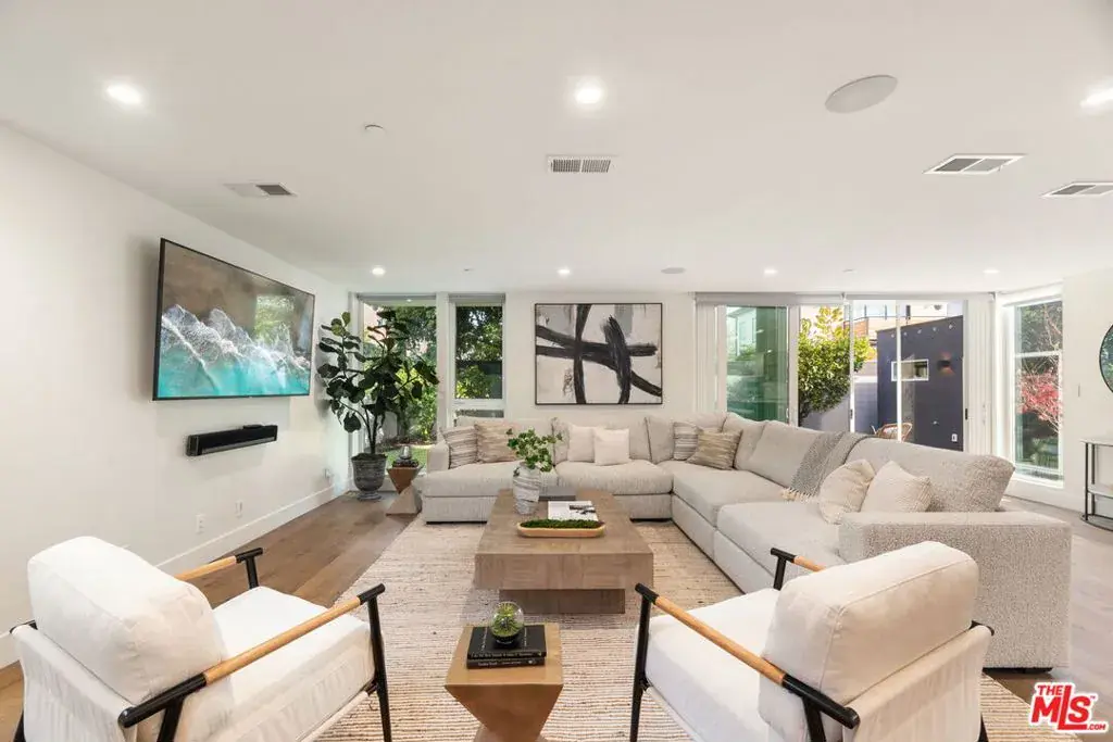 Exceptional custom modern home in the heart of Carlson Park, Culver City. Built from the ground up, this residence offers 4 bedrooms, 3.5 bathrooms, plus a separate 360-sq-ft guest unit/ADU with its own entrance, totaling approximately 4,100 sq ft. High ceilings, recessed lighting, and extra-wide plank hardwood floors create a bright, refined interior. The open chef’s kitchen features Sub-Zero and Wolf appliances, Moroccan tile, and flows seamlessly into a sun-filled dining area ideal for entertaining. Smart and energy-efficient features include central air and heat, built-in ceiling speakers, Lutron lighting, privacy window tinting, whole-house water filtration, and an electric car charger. The guest unit is perfect as a home office or in-law suite, complete with a full kitchen and bathroom overlooking a private side patio. The serene backyard offers meyer lemon and orange trees, a 30-foot golf putting green, and a spacious shaded side yard. Located near the award-winning Farragut Elementary, Culver City Middle and High School, Carlson Park, and vibrant Downtown Culver City.