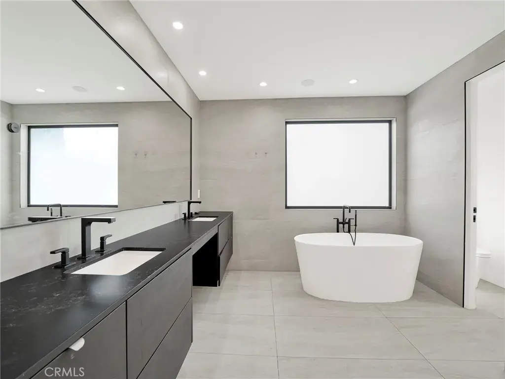 Welcome to 4712 Berryman Avenue, tucked away on a quiet residential street in the heart of Culver City. This exceptional and hard-to-find offering presents two contemporary residences built in 2020 on one lot, thoughtfully designed for multi-generational living, guests, or premium rental income. The main residence spans approximately 3,098 square feet and features 4 bedrooms and 4.5 bathrooms across two levels. Inside, a light-filled open layout defines modern California living, highlighted by expansive windows, soaring ceilings, and a striking floating staircase that serves as a dramatic architectural centerpiece. The living and dining spaces flow seamlessly to the outdoors through oversized sliding doors, creating an ideal environment for entertaining and everyday living. An in-wall, glass-enclosed wine cellar in the living room adds a refined design statement and a functional showcase for any collection. The chef’s kitchen is both stylish and functional, showcasing a generous center island, sleek custom cabinetry, quartz countertops, and high-end appliances. A main-level bedroom suite offers flexibility as a guest room or private home office. Upstairs, the tranquil primary suite is a true retreat, complete with a private balcony, walk-in closet, and spa-inspired bath. Additional upstairs bedrooms each feature en-suite bathrooms with refined finishes and designer details throughout. Set privately at the rear of the property, the approximately 1,200 square foot detached guest house offers 3 bedrooms and 2 bathrooms with its own open-concept kitchen, living, and dining areas. Designed with independence in mind, this residence includes a private outdoor space and an impressive rooftop deck, making it ideal for extended family, creative use, or a highly desirable income-producing rental. The property also provides ample parking for up to six vehicles, including a two-car garage—an increasingly rare convenience in this Culver City location. Situated just minutes from Culver City’s vibrant downtown, residents enjoy close proximity to top-rated schools, parks, Whole Foods, Playa Vista, and LA’s thriving tech and entertainment corridors. With easy access to the 405 and 10 freeways and the Ballona Creek bike path leading straight to the beach, this location effortlessly balances connectivity, lifestyle, and long-term value.