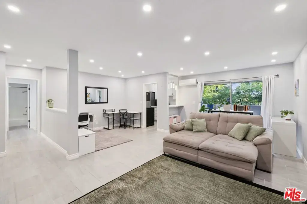 LOWEST PRICED CONDO PER SQUARE FOOTAGE! Move right into this beautifully maintained and spacious top floor unit with 850sf of living space. Every window has tree top views for complete privacy. Enjoy the added privacy of no one above you and relax on your private balcony just off the living room with tree top views. This condo has grey tiled floors throughout, recessed lighting and two mini split (heating/air) systems in the bedroom and living room. There are two large closets in the bedroom with additional closet space in the hallway as well. The bathroom has a vanity with quartz counters, and the shower/tub was just reglazed. The kitchen has a brand-new dishwasher, updated appliances, white wood cabinets and quartz countertops. The Sumner House complex offers a welcoming lobby with intercom entry, gated subterranean parking and a relaxing pool area. This unit comes with 1 parking space #47 and additional storage unit in the garage/laundry room. Come live in this ideal location just up the street from Fox Hills Park, Westfield Shopping Mall, Trader Joes and easy access to the 90 freeway. Low HOA’s which include your water bill and earthquake insurance. ALL CASH OR NON-CONVENTIONAL LOANS REQUIRED DUE TO SB326 UNTIL ALL BALCONIES ARE REPAIRED!!