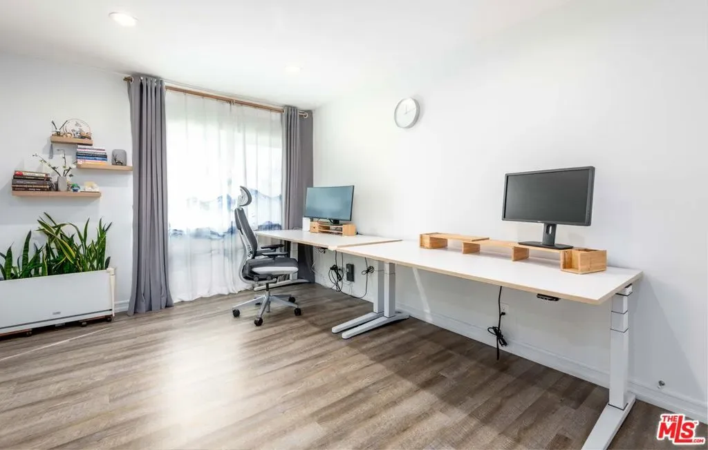 Centrally located in a poolside English garden setting, this rarely-offered townhome in coveted FoxView is a wonderful place to call home. Upon entry, step into the contemporary living space boasting high ceilings, luxury vinyl plank flooring, fireplace, raised dining area, and enchanting outdoor patio. Delight in preparing meals in the high function-designed kitchen outfitted with custom cabinetry, sleek quartz countertops and backsplash, integrated high-end stainless steel appliances, smart lighting, and refined curated fixtures to maximize utility. Adjacent to the kitchen is a stylish powder room and separate den/office with closet that can also be used as bedroom. Upstairs discover a spacious ensuite featuring 2 closets (one a walk-in), private outdoor balcony overlooking the pool, and luxurious bathroom with floor-to-ceiling tiles, deep soaking tub, walk-in spa shower with frameless glass, floating dual-sink vanity, and modern fixtures. Down the hallway is a second bedroom and exquisitely-remodeled tiled bathroom with a large walk-in shower, floating vanity, and smart mirror. Additional highlights of this high-tech, yet relaxing sanctuary includes an attached garage with washer and dryer and EV charger, 2 Gig fiber Internet, home smart controls with most switches Internet-connected, water filtration system, central air, and energy-efficient windows and sliders. Desirable Silicon Beach location just minutes from numerous tech and media companies including Amazon, Apple, TikTok, YouTube, Sony, Google, and more!