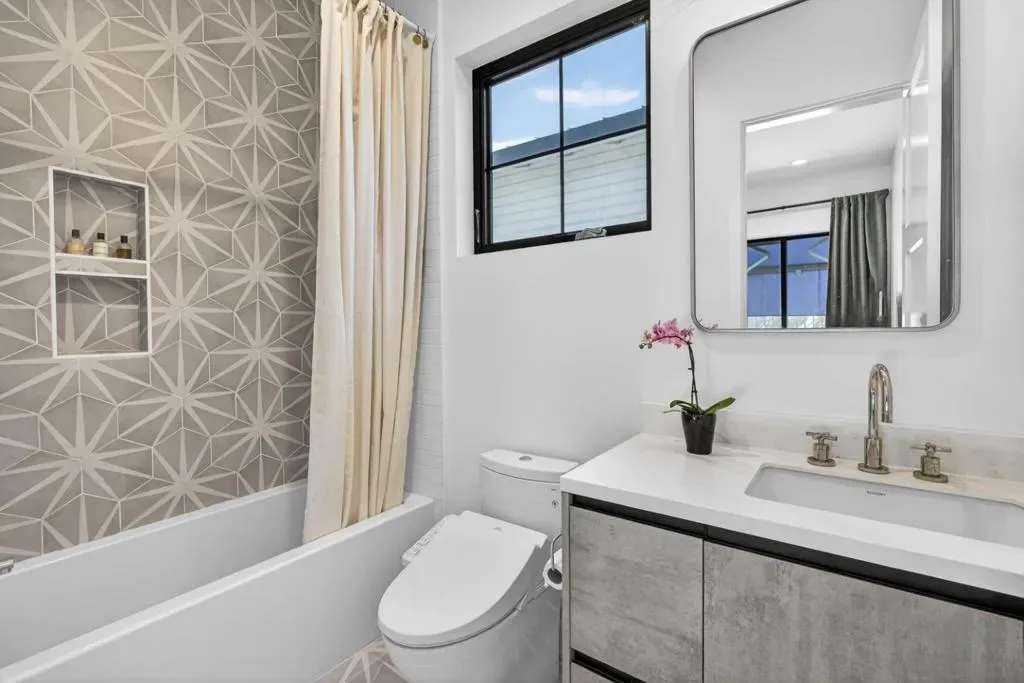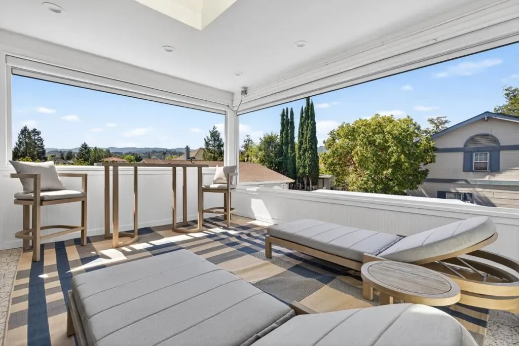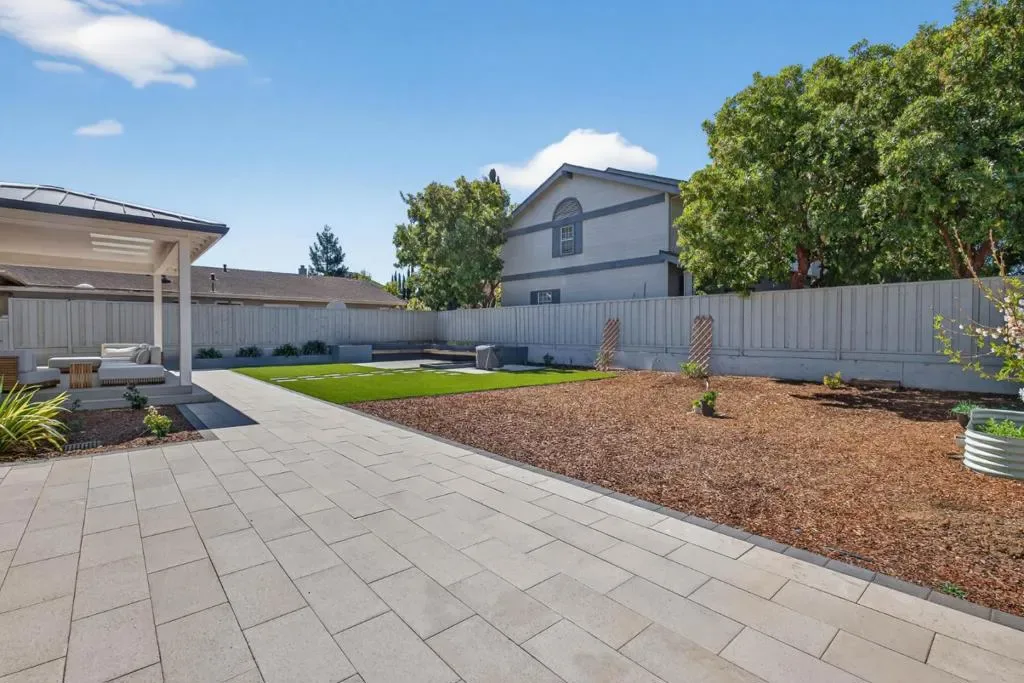 Newer 2024 built contemporary home in the highly sought-after Monta Vista neighborhood, near Apples Infinite Loop & Spaceship Campus, major tech hubs, & Hwys 85 & 280. Top-rated schools include Lincoln Elem., Kennedy Mid., & Monta Vista High. Featuring a bright open-concept layout with high tray ceilings, recessed lighting, skylights, & large-format tile flooring. Flow connects the family room, dining area, kitchen, & outdoor living spaces. The family room showcases a linear fireplace & feature wall. The kitchen has a large center island, two-tone cabinetry, stainless steel appliances: built-in refrigerator & wall ovens, cooktop, hood, butlers pantry, & designer fixtures. A dedicated bonus room & spacious upstairs loft with built-in workstation, floor-to-ceiling storage, wet bar, & beverage fridge. The primary suite features a private balcony, spa-inspired bath with freestanding soaking tub, dual floating vanity, slab-style tile walls, frameless glass shower with niches, designer sconces, & water closet. Designer-appointed bathrooms throughout, dedicated laundry room, & custom mudroom. Exterior features a covered patio with skylights, additional open patio, expansive paver areas, & a private fully fenced backyard with lawn, hardscape, & low-maintenance landscaping.