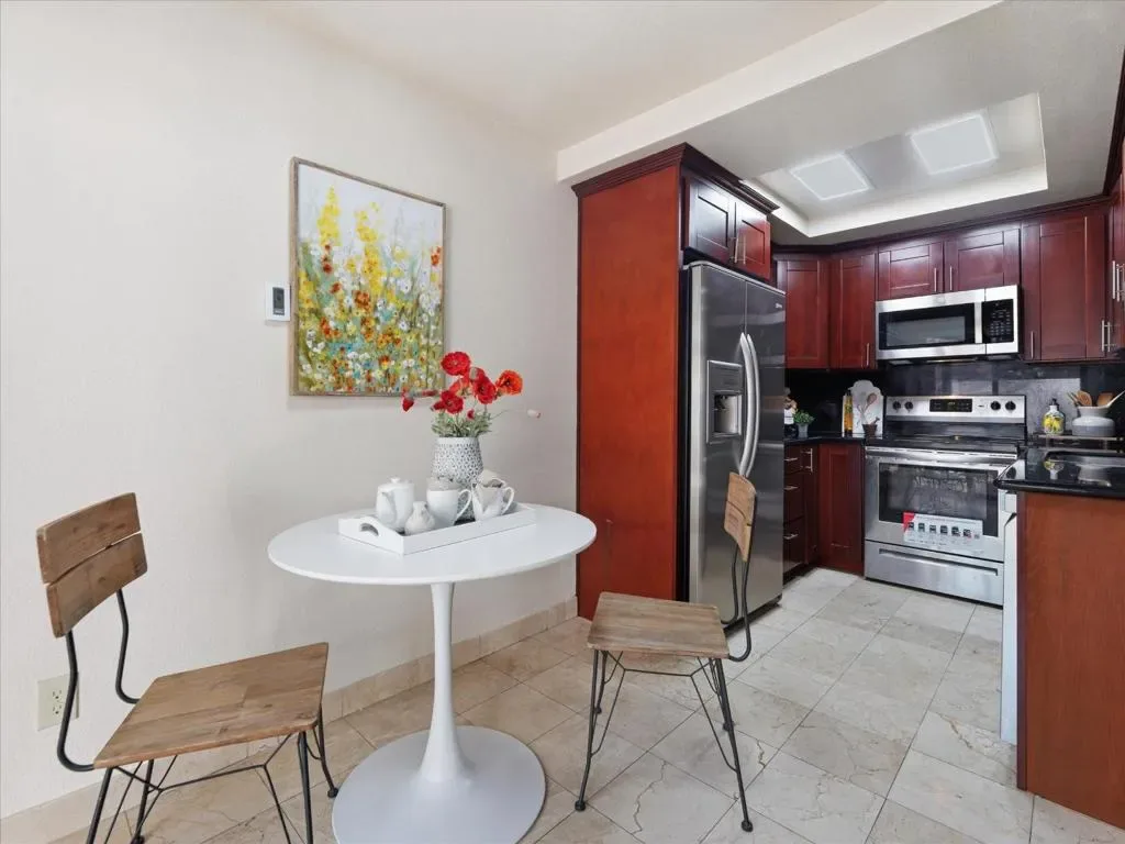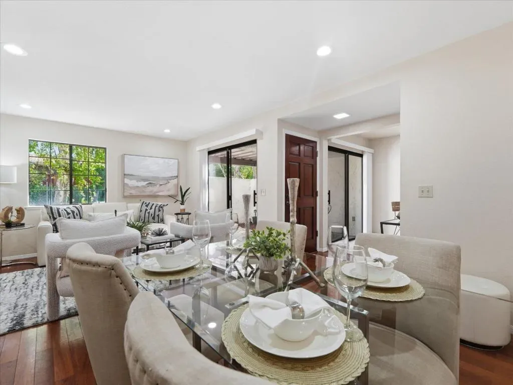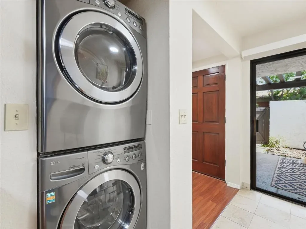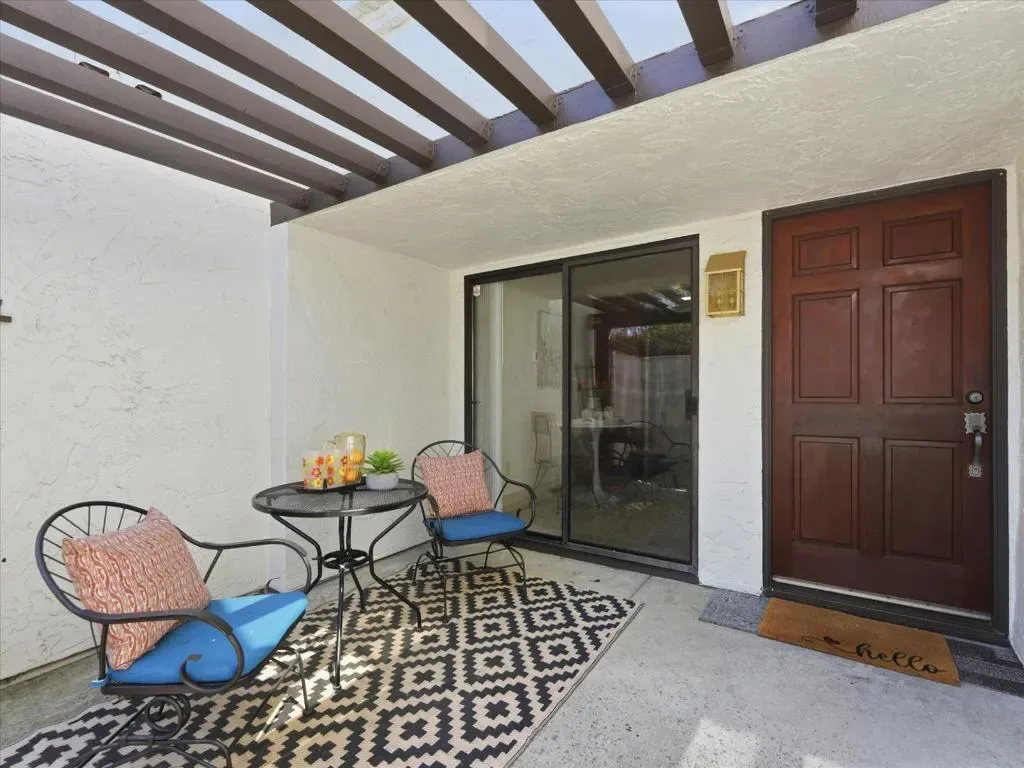Welcome to this beautifully updated end-unit townhome in the sought-after Portal Plaza community, just minutes from Apple Park and within Cupertinos top-rated school district. *This spacious two-story residence offers 2 bedrooms and 2.5 bathrooms, with an ideal functional layout. The inviting front patio creates a perfect space for relaxing, while the light-filled living room features a seamless indoor-outdoor flow. *The renovated kitchen includes granite countertops, stainless steel appliances, and ample cabinetry, complemented by a convenient powder room and in-unit stacked washer, dryer on the main level. Upstairs, the home features a high-ceiling primary suite and a large secondary bedroom, both with updated bathrooms. Additional highlights include new interior paint, laminate flooring, recessed lighting, a one-car garage, two parking permits, & ample guest parking. Ideally located just minutes from Apple campus, with easy access to Highways 280 & 85 and Lawrence Expressway. Enjoy a vibrant lifestyle with walk to Marukai Market, parks, the Cupertino Library, shopping, and dining. The community features a pool, and monthly dues cover water, garbage, roof, exterior maintenance, garage structure, and common areas. Don’t miss this opportunity in a prime Cupertino location!