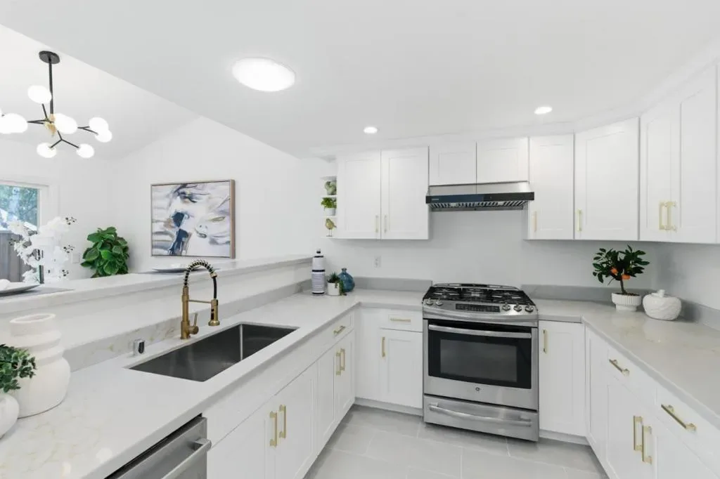 Beautifully remodeled townhome with vaulted ceilings and abundant natural light in the heart of Cupertino, offering a bright and modern living experience in a highly sought-after location. The main living area features a dramatic high ceiling with skylight and fireplace, creating a light-filled space that seamlessly connects to a private patio. The updated kitchen showcases brand-new cabinetry, countertops, sink, faucet, and exhaust fan, complemented by new flooring, fresh interior paint and recessed lighting Thoughtful upgrades extend beyond aesthetics, including updated gas lines, a replaced water heater, newer gas stove & AC. The garage offers generous storage room & features a modern opener system with built-in camera for added convenience and security. Enjoy access to community amenities: including swimming pools, tennis court, clubhouse + fitness center, and a childrens play area for relaxation. The community clubhouse also serves as a social hub, where children enjoy activities and build lasting friendships. Situated within the award-winning Cupertino school district. Ideally located minutes from Apple Park, Cupertino Village, shopping, dining, and major commuter routes including Hwy 280. This home presents an exceptional opportunity in the heart of Silicon Valley.