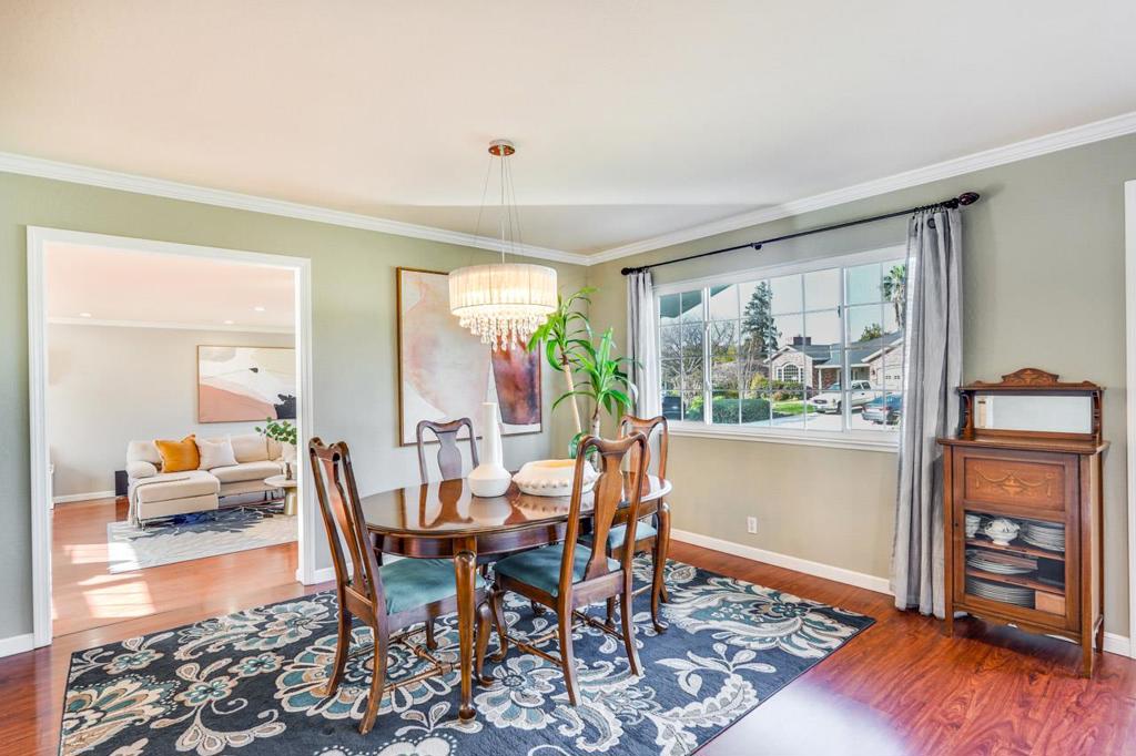 Remarkably stunning 1-story, 4 bedroom, 2 bath home located on a 9,750 sf lot ! This magnificent home with attractive curb appeal and beautifully landscaped yard boasts an impressive and ideal floor plan. Elegant front door leads into the spacious living room with adjacent dining area, accented with crown molding, recessed lights, and multiple windows for a light-filled and inviting space for social gatherings and entertaining. Gourmet kitchen is equipped with stainless steel gas range and appliances, backsplash, granite countertops, breakfast bar, and plentiful cabinetry for storage. Retreat into the open and bright family room featuring fireplace with mantel, built-in shelves and cabinets, and sliding glass door that flows seamlessly into the backyard, creating a perfect atmosphere to study or play. Luxurious primary suite is complete with a relaxing soaking tub, peaceful views and access to the serene backyard with sprawling deck, patio with pergola for a wonderful private oasis. Amenities : Top-rated Cupertino schools, laundry room with utility sink and cabinets, well proportioned secondary bedrooms with ample closet space, hardwood floor, 2 car garage with attached workroom/storage room. Convenient location close to shopping, dining, and easy access to major employers.